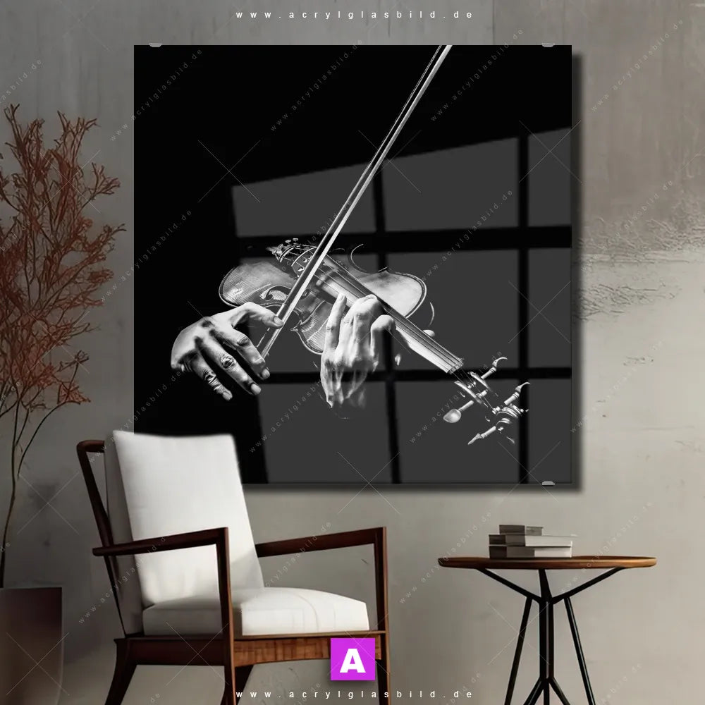 <b>Produktart:</b> Acrylglasbild | Glasbild | Wandbild aus Kunstglas | <b> Motiv:</b> Der Geigenspieler | <b> Bildausrichtung:</b> Quadrat | <b> Max. Motiv-Größe:</b> 180cm breit | 270cm hoch | <b> Verfügbare Formate: </b> Quadrat, Querformat, Hochformat, Panorama, Rund, Schmal | <b> Kategorie:</b> Porträts - Menschen | <b> Farben:</b> Schwarz, Weiss | <b> Kunstformen:</b> Fotografie | <b> Kunststile:</b> Minimalistisch, Schwarz - Weiss, Natürlich - Realistisch