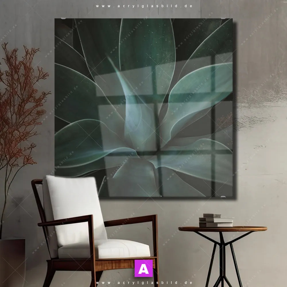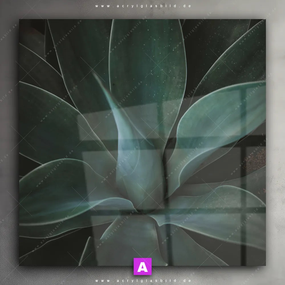 <b>Produktart:</b> Acrylglasbild | Glasbild | Wandbild aus Kunstglas | <b> Motiv:</b> Dunkles Agavenblatt | <b> Bildausrichtung:</b> Quadrat | <b> Max. Motiv-Größe:</b> 270cm breit | 405cm hoch | <b> Verfügbare Formate: </b> Quadrat, Querformat, Hochformat, Panorama, Schmal, Rund | <b> Kategorie:</b> Blumen - Botanik | <b> Farben:</b> Grün, Schwarz, Blau, Türkis | <b> Kunstformen:</b> Fotografie | <b> Kunststile:</b> Minimalistisch, Floral