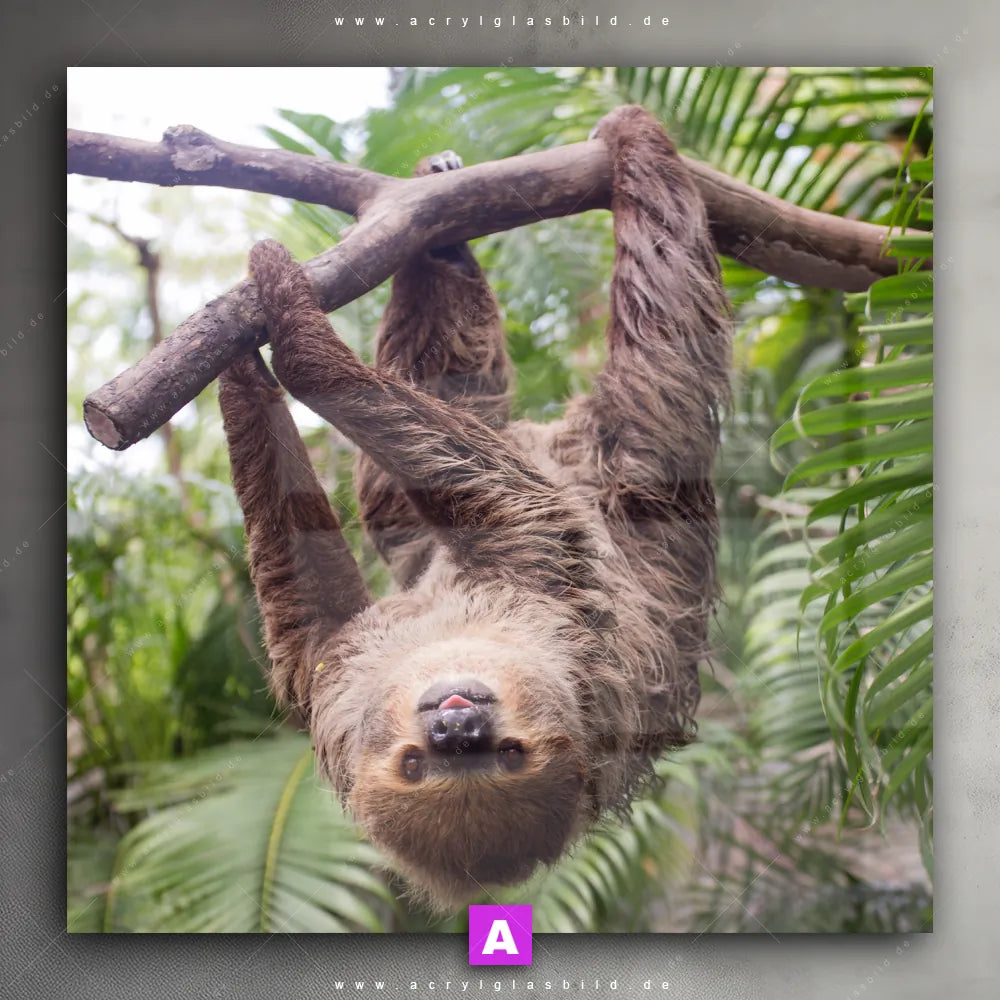 Mit unserem Acrylglasbild hängendes Faultier aus der Kategorie Tierwelt, Wald - Bäume wirst du nie wieder auf deinem Sofa vor Langeweile versinken. Und wenn du ein Wandbild mit Faultier, Dschungel, Wildtiere, abhängen suchst, empfehlen wir dir unser Acrylglasbild Faultier zeigt Zunge in den faszinierenden Farben Braun, Grün. Es wurde in der Form eines Fotografie gestaltet und harmoniert hervorragend mit deinem bevorzugten Natürlich - Realistisch Stil.