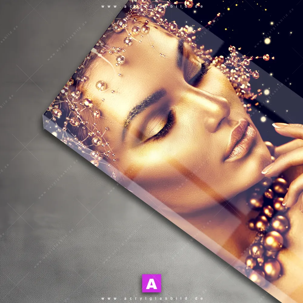 Also, worauf wartest du noch? Verleihe deinen Wänden das gewisse Etwas und bestelle jetzt das Acrylglasbild verzierte Frau mit Goldschimmer!