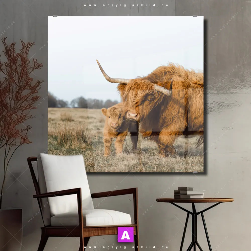 <b>Produktart:</b> Acrylglasbild | Glasbild | Wandbild aus Kunstglas | <b> Motiv:</b> Highlander Familie | <b> Bildausrichtung:</b> Quadrat | <b> Max. Motiv-Größe:</b> 300cm breit | 450cm hoch | <b> Verfügbare Formate: </b> Quadrat, Querformat, Hochformat, Panorama, Schmal, Rund | <b> Kategorie:</b> Tierwelt | <b> Farben:</b> Braun, Beige, Weiss | <b> Kunstformen:</b> Fotografie | <b> Kunststile:</b> Modern Art, Natürlich - Realistisch