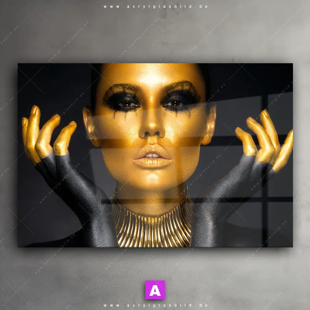 Das Motiv Fingerspitzengefühl wird im UV-Direktdruck in den Farben Gold, Schwarz auf die Rückseite einer 5mm starken, transparenten Acrylglasplatte gedruckt. Das durchscheinende Motiv schwarz-goldene Schönheit im Modern Art Stil wird anschließend vollflächig mit einer weißen Schicht hinterlegt. Das Porträts - Menschen Acrylglasbild | Querformat erhält so eine bemerkenswerte Farbbrillanz, hohe Schärfe und erstaunliche Tiefenwirkung.