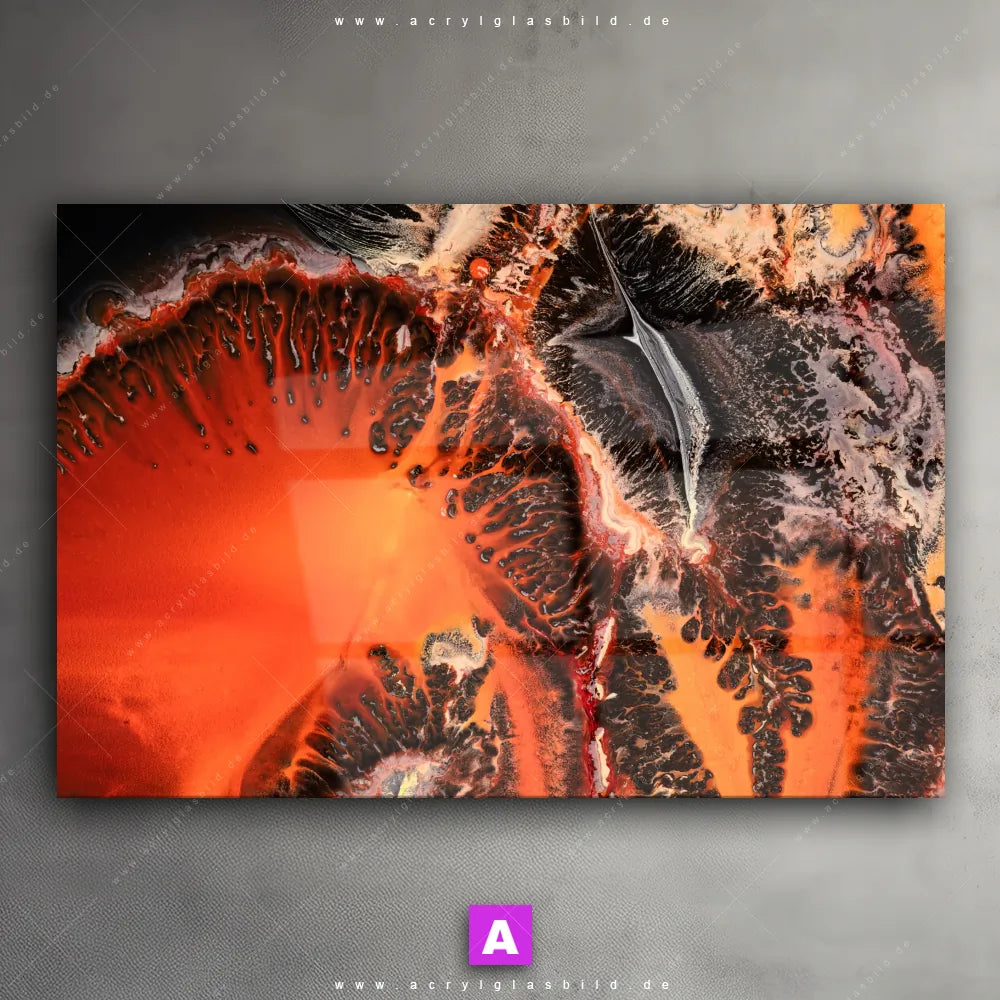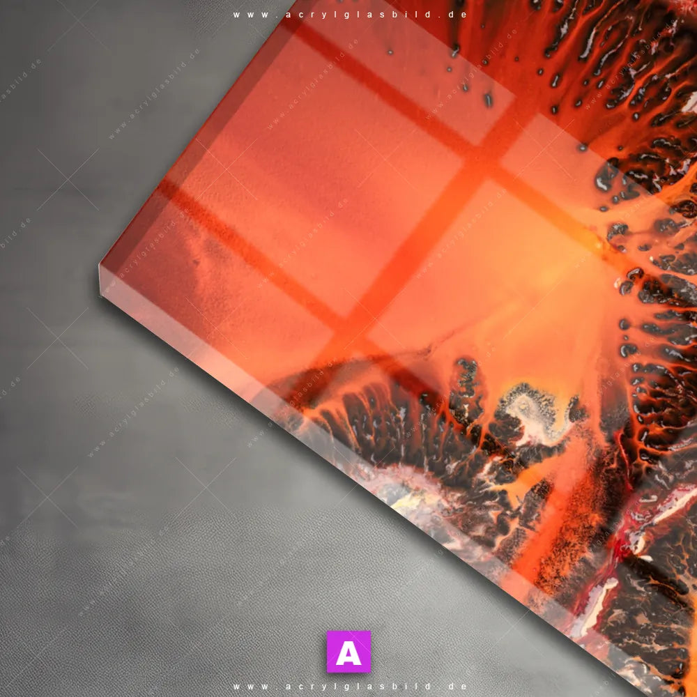 <b>Produktart:</b> Acrylglasbild | Glasbild | Wandbild aus Kunstglas | <b> Motiv:</b> Fluid Art Lavastrom | <b> Bildausrichtung:</b> Querformat | <b> Max. Motiv-Größe:</b> 270cm breit | 180cm hoch | <b> Verfügbare Formate: </b> Quadrat, Querformat, Hochformat, Panorama, Schmal, Rund | <b> Kategorie:</b> Muster - Texturen | <b> Farben:</b> Schwarz, Rot, Orange | <b> Kunstformen:</b> Fotografie, Kunst - Malerei | <b> Kunststile:</b> Abstrakt, Modern Art