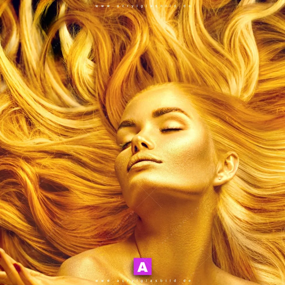 Unser Acrylglasbild goldige Frau aus der Kategorie Porträts - Menschen wird deinem Raum einen Hauch von Luxus verleihen, und du wirst nie wieder von Langeweile geplagt sein. Und wenn du nach einem Bild mit Frau, Beauty, Haar, Gesicht, Körper suchst, empfehlen wir dir unser Acrylglasbild langes, goldiges Haar in den aufregenden Farben Gold, Schwarz. Mit seiner Gestaltung als Fotografie passt es hervorragend zum Natürlich - Realistisch, Modern Art-Stil.