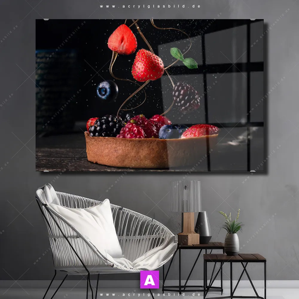 Hallo, du Meister der Dekoration oder Königin des Stils, bist du bereit, deine Räume, wie Bar - Gastronomie, Küche - Esszimmer, in einen kreativen Kunstsalon zu verwandeln? Dann haben wir das perfekte Wandkunstwerk für dich: Unser Acrylglasbild Kuchen mit frischen Beeren im Querformat wird im Handumdrehen jeden Raum auf ein neues Level heben!