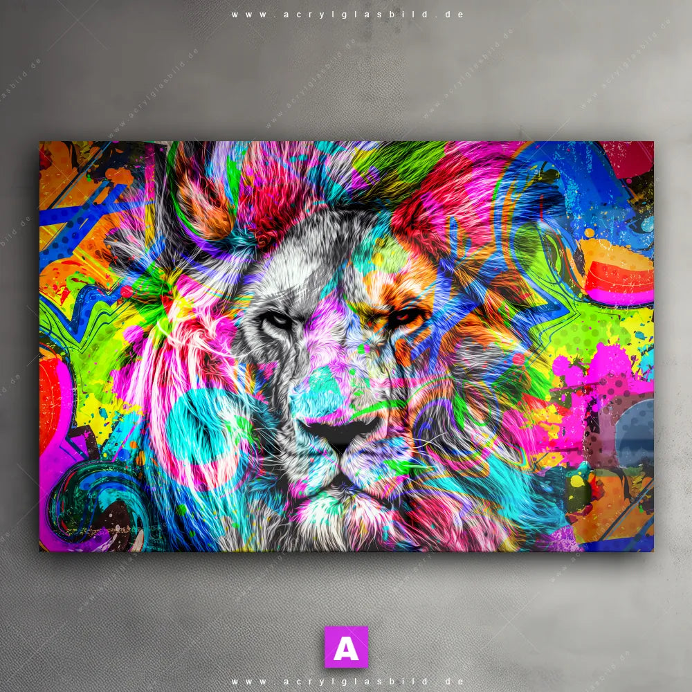 Also, zögere nicht länger und verleih deinen vier Wänden Farbe und Leben. Bestelle jetzt das Acrylglasbild Löwe umgeben von Farbenpracht