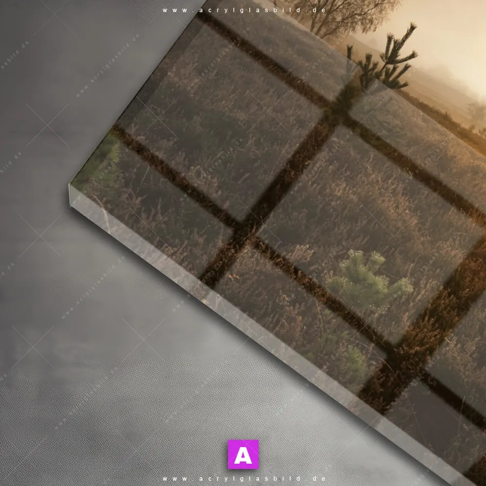 Das Motiv Rothirsch im Nebel wird im UV-Direktdruck in den Farben Beige, Braun auf die Rückseite einer 5mm starken, transparenten Acrylglasplatte gedruckt. Das durchscheinende Motiv Hirsch am Sommermorgen im Natürlich - Realistisch Stil wird anschließend vollflächig mit einer weißen Schicht hinterlegt. Das Landschaften, Tierwelt Acrylglasbild | Querformat erhält so eine bemerkenswerte Farbbrillanz, hohe Schärfe und erstaunliche Tiefenwirkung.