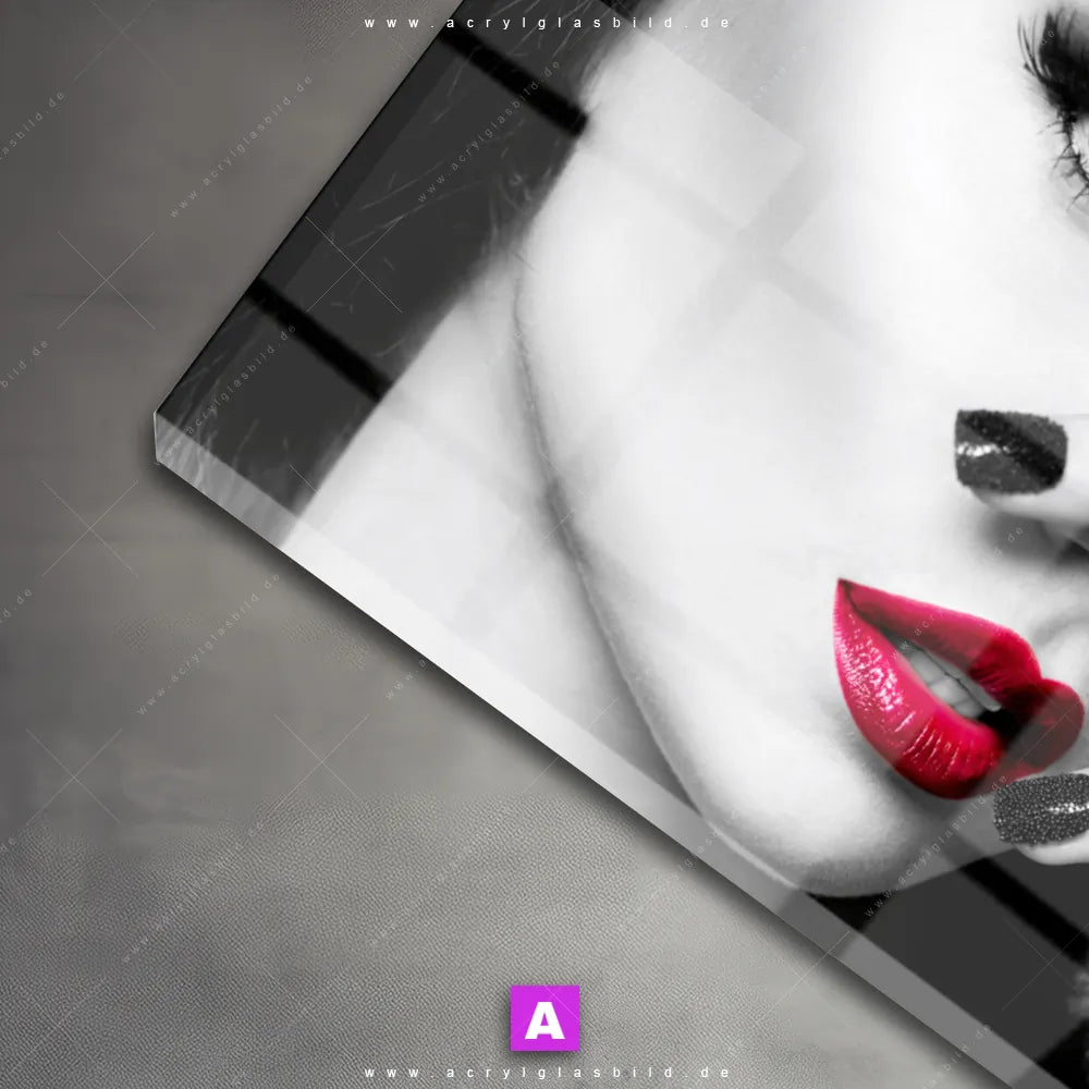 Das Motiv Schöne Geheimnisvolle wird im UV-Direktdruck in den Farben Schwarz, Weiss, Rot auf die Rückseite einer 5mm starken, transparenten Acrylglasplatte gedruckt. Das durchscheinende Motiv verführerische Lippen im Modern Art, Schwarz - Weiss Stil wird anschließend vollflächig mit einer weißen Schicht hinterlegt. Das Porträts - Menschen Acrylglasbild | Querformat erhält so eine bemerkenswerte Farbbrillanz, hohe Schärfe und erstaunliche Tiefenwirkung.