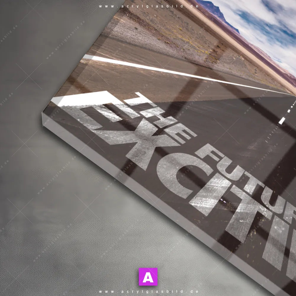 Das Motiv The Future - Motivation wird im UV-Direktdruck in den Farben Blau, Braun, Weiss auf die Rückseite einer 5mm starken, transparenten Acrylglasplatte gedruckt. Das durchscheinende Motiv aufregende Zukunft im Modern Art Stil wird anschließend vollflächig mit einer weißen Schicht hinterlegt. Das Landschaften Acrylglasbild | Querformat erhält so eine bemerkenswerte Farbbrillanz, hohe Schärfe und erstaunliche Tiefenwirkung.
