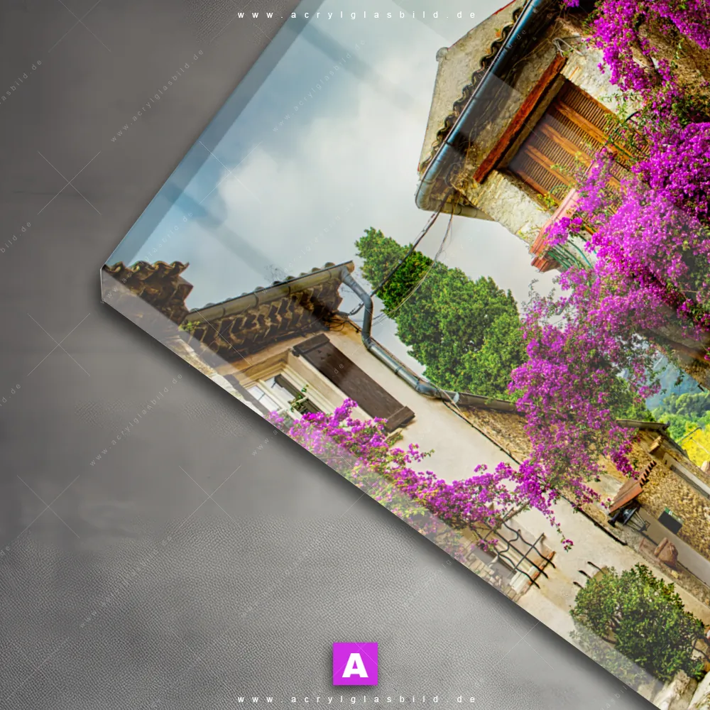 Das Acrylglasbild Romantisches Dorf ist ein absolutes Must-Have, wenn du nach einem Wandbild in der Kategorie Architektur - Gebäude suchst, das deine Persönlichkeit widerspiegelt. Die Farben in Rosa, Orange, Lila, Ocker, Gelb , Beige, Braun und die außergewöhnlichen Details wie Blumen | Botanik, Pflanze, Natur, Blüte, romantisch, Reisen, Provence, Altstadt, Frankreich machen das Acrylglasbild französische Altstadt einzigartig und verleihen jedem Raum, sei es Wohnzimmer, Schlafzimmer oder sogar das Gäste-WC, den Wow-Faktor, den er verdient.