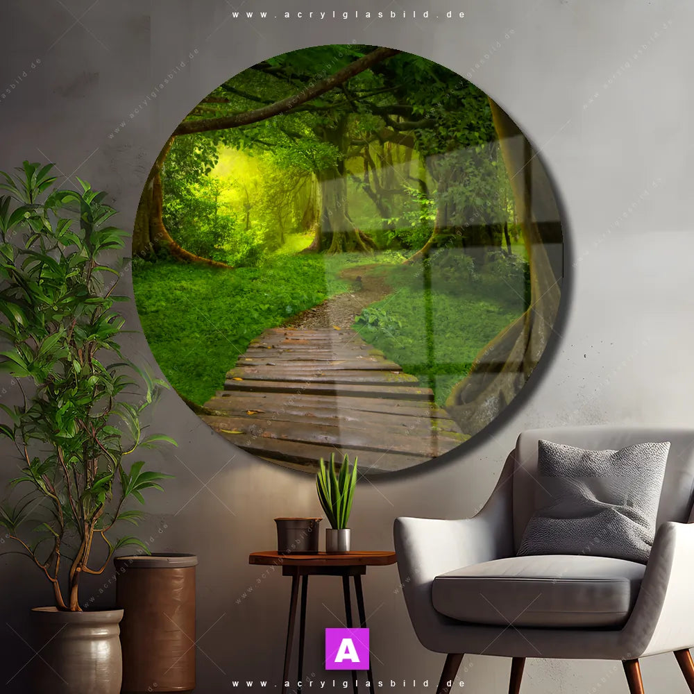 Hey du! Bist du es auch leid, auf langweilige, weiße Wände in deinem Raum zu starren und dich zu fragen, ob das der Sinn des Lebens ist? Unser Acrylglasbild mit dem Titel Asiatischer Dschungel im Format Rund verwandelt deine Wand in ein Kunstwerk und macht deinen Raum zum absoluten Hingucker.