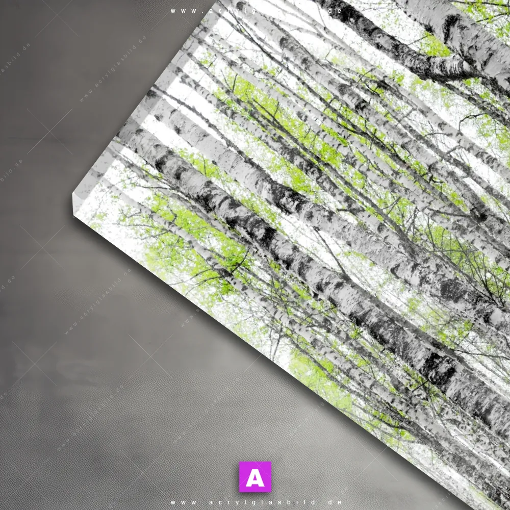 <b>Produktart:</b> Acrylglasbild | Glasbild | Wandbild aus Kunstglas | <b> Motiv:</b> Birkenwald | <b> Bildausrichtung:</b> Rund | <b> Max. Motiv-Größe:</b> 270cm breit | 110cm hoch | <b> Verfügbare Formate: </b> Quadrat, Querformat, Hochformat, Panorama, Schmal, Rund | <b> Kategorie:</b> Landschaften, Wald - Bäume | <b> Farben:</b> Grün, Weiss | <b> Kunstformen:</b> Fotografie | <b> Kunststile:</b> Natürlich - Realistisch, Modern Art