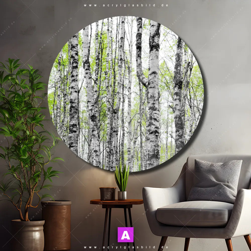 Acrylglasbild | Birkenwald | Rund
