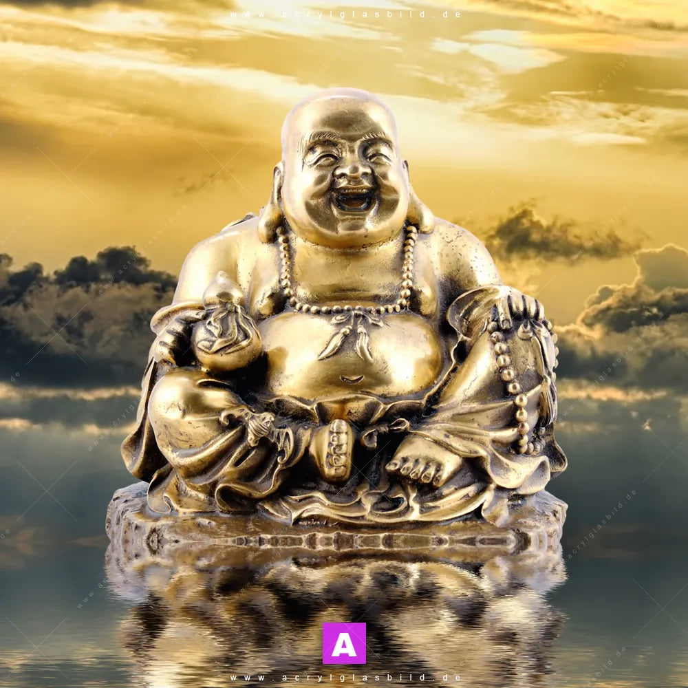 Das Acrylglasbild Lachender Buddha ist ein absolutes Must-Have, wenn du nach einem Wandbild in der Kategorie Buddha - Feng Shui suchst, das deine Persönlichkeit widerspiegelt. Die Farben in Gold, Ocker, Orange, Blau und die außergewöhnlichen Details wie Buddha, Buddhismus, Religion, Feng Shui, Zen, Meditation, spirituell, heilig, Esoterik, Gott, Gesicht, Statue, Himmel, Wolken, Sonnenuntergang, Sonnenaufgang, Wasserspiegelung, Spiegelung machen das Acrylglasbild Buddha-Figur mit Wasserspiegelung einzigartig und verleihen jedem Raum, sei es Wohnzimmer, Schlafzimmer oder sogar das Gäste-WC, den Wow-Faktor, den er verdient.