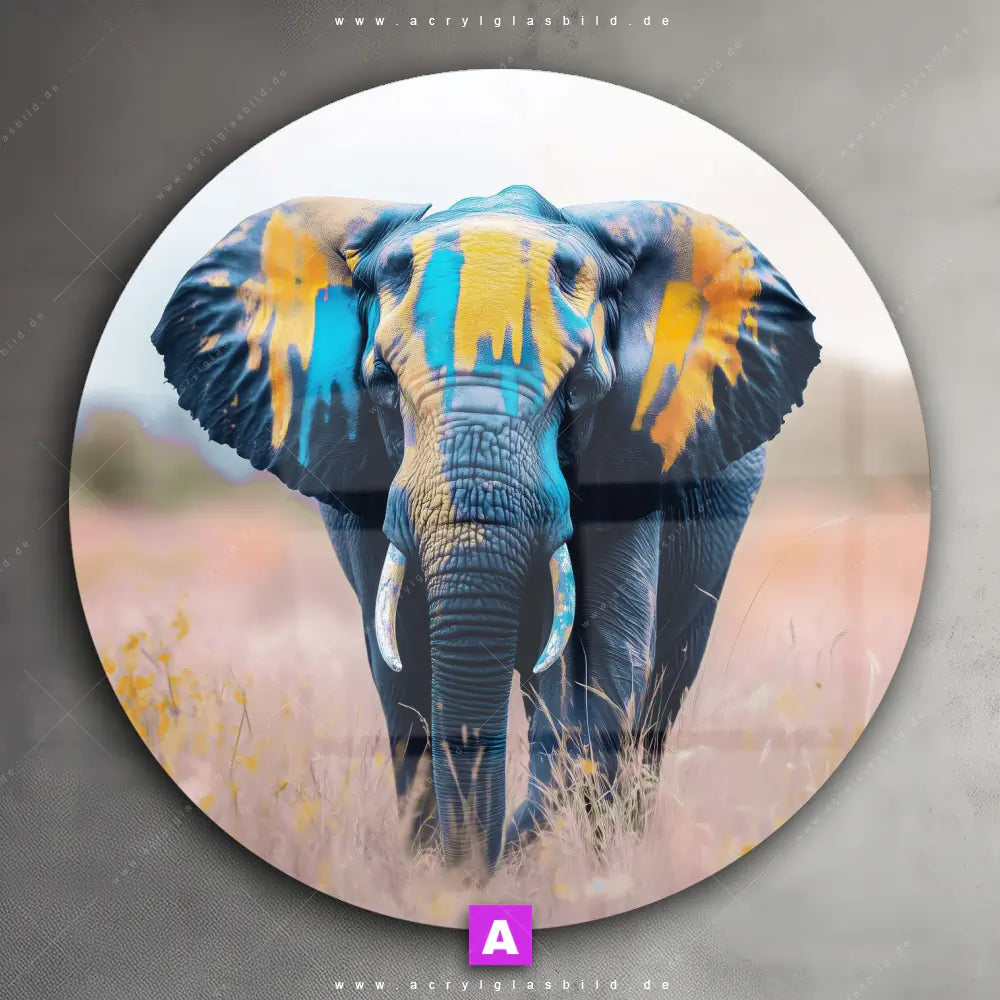 Hey du! Bist du es auch leid, auf langweilige, weiße Wände in deinem Raum zu starren und dich zu fragen, ob das der Sinn des Lebens ist? Unser Acrylglasbild mit dem Titel Elefant - Farben der Wildnis im Format Rund verwandelt deine Wand in ein Kunstwerk und macht deinen Raum zum absoluten Hingucker.