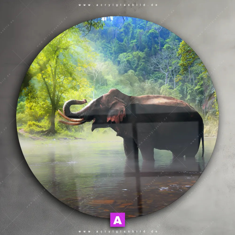 Hey du! Bist du es auch leid, auf langweilige, weiße Wände in deinem Raum zu starren und dich zu fragen, ob das der Sinn des Lebens ist? Unser Acrylglasbild mit dem Titel Elefant im Wasser im Format Rund verwandelt deine Wand in ein Kunstwerk und macht deinen Raum zum absoluten Hingucker.