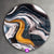 Das Motiv Fluid Art Goldrausch wird im UV-Direktdruck in den Farben Gold, Weiss, Schwarz, Blau auf die Rückseite einer 5mm starken, transparenten Acrylglasplatte gedruckt. Das durchscheinende Motiv verlaufende Farbstreifen im Abstrakt, Modern Art Stil wird anschließend vollflächig mit einer weißen Schicht hinterlegt. Das Muster - Texturen Acrylglasbild | Rund erhält so eine bemerkenswerte Farbbrillanz, hohe Schärfe und erstaunliche Tiefenwirkung.
