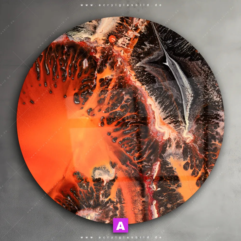<b>Produktart:</b> Acrylglasbild | Glasbild | Wandbild aus Kunstglas | <b> Motiv:</b> Fluid Art Lavastrom | <b> Bildausrichtung:</b> Rund | <b> Max. Motiv-Größe:</b> 270cm breit | 180cm hoch | <b> Verfügbare Formate: </b> Quadrat, Querformat, Hochformat, Panorama, Schmal, Rund | <b> Kategorie:</b>  Muster - Texturen | <b> Farben:</b>  Schwarz, Rot, Orange | <b> Kunstformen:</b>  Fotografie, Kunst - Malerei | <b> Kunststile:</b>  Abstrakt, Modern Art