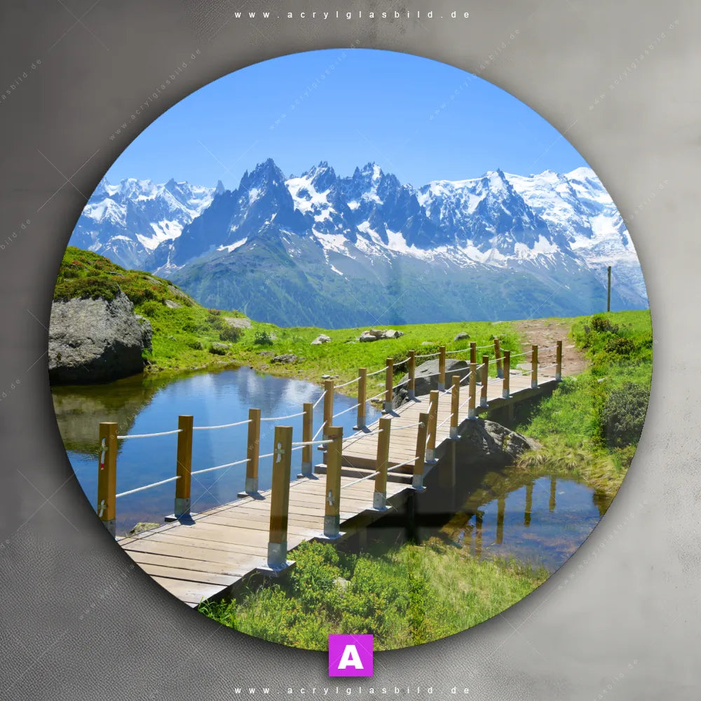 Das Acrylglasbild Mont Blanc-Gebirge ist ein absolutes Must-Have, wenn du nach einem Wandbild in der Kategorie Landschaften suchst, das deine Persönlichkeit widerspiegelt. Die Farben in Grün, Blau, Weiss, Braun, Beige und die außergewöhnlichen Details wie Steg, Berge, Bergsee, Gebirge, Wiese, wandern, See, Urlaub, Reisen, Brücke, Natur machen das Acrylglasbild Idyllische Landschaft mit Bergen einzigartig und verleihen jedem Raum, sei es Wohnzimmer, Schlafzimmer oder sogar das Gäste-WC, den Wow-Faktor, den er verdient.