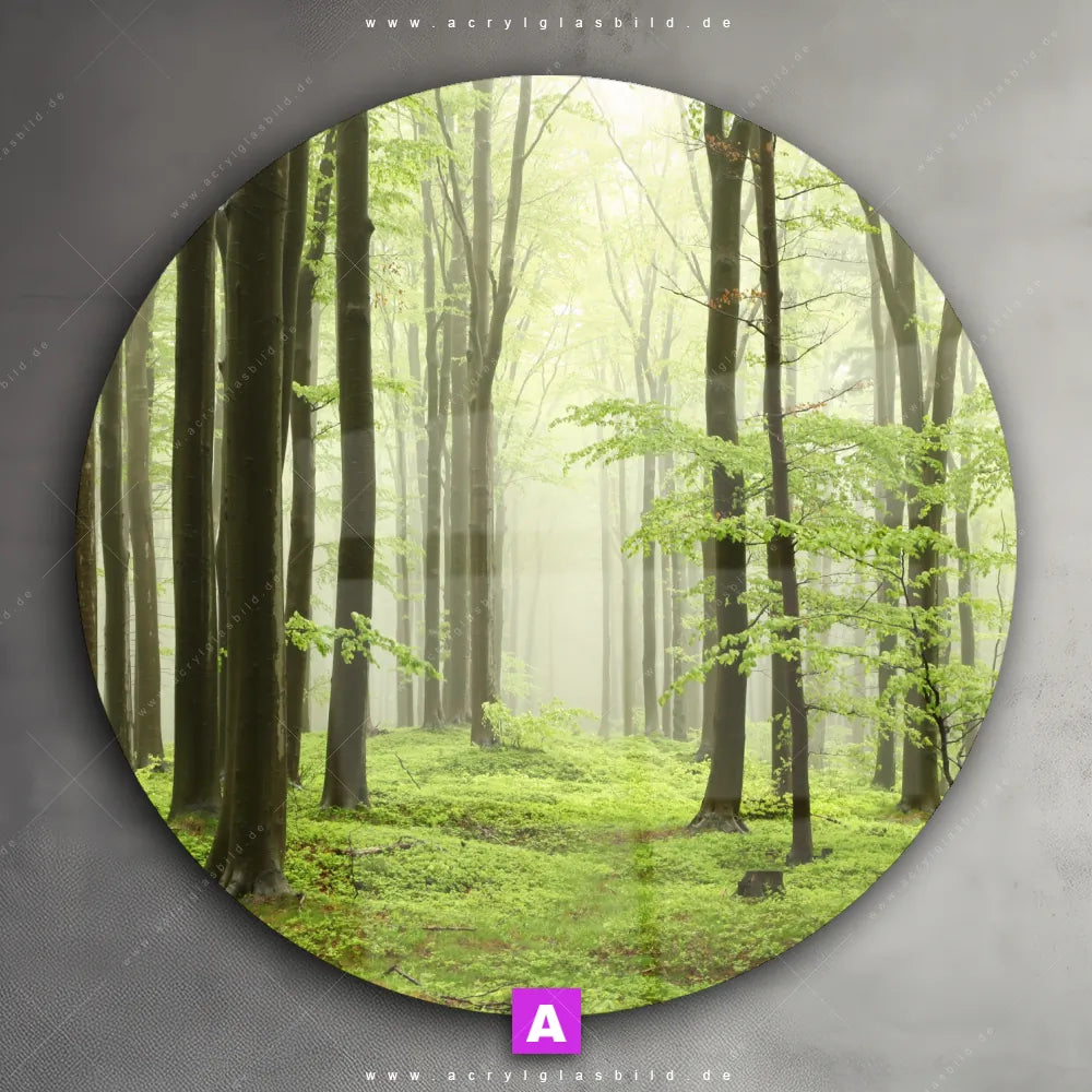 Acrylglasbild | Frühling im Buchenwald | Rund
