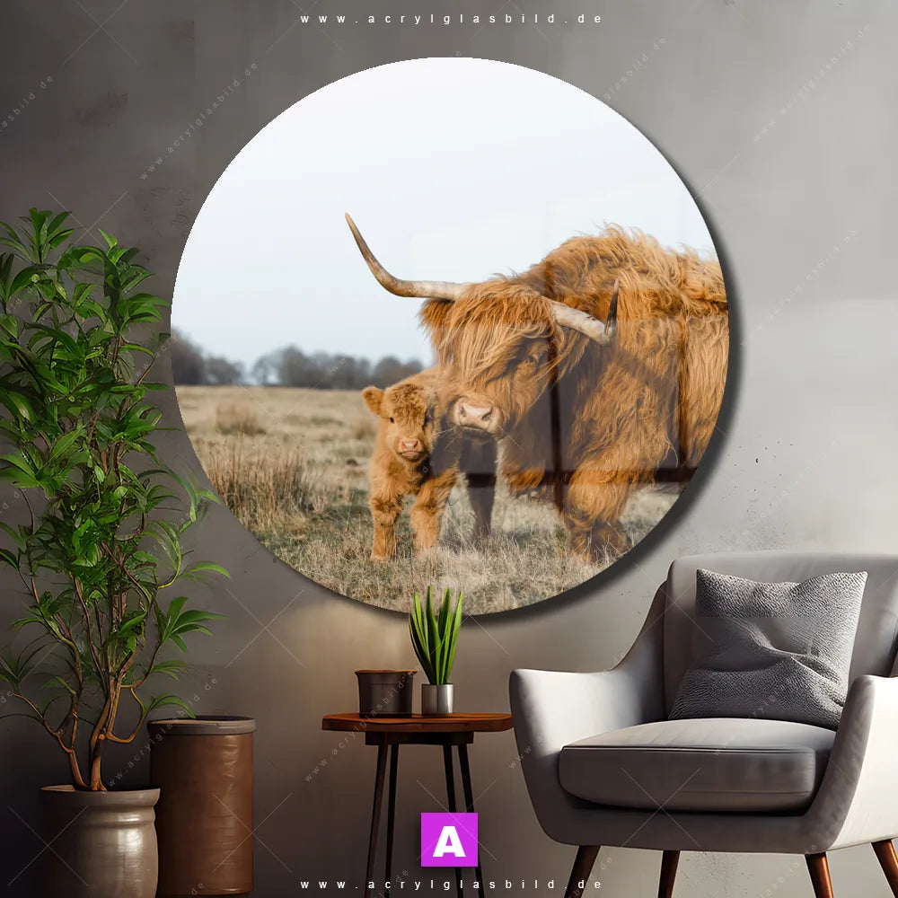 Hey du! Bist du es auch leid, auf langweilige, weiße Wände in deinem Raum zu starren und dich zu fragen, ob das der Sinn des Lebens ist? Unser Acrylglasbild mit dem Titel Highlander Familie im Format Rund verwandelt deine Wand in ein Kunstwerk und macht deinen Raum zum absoluten Hingucker.