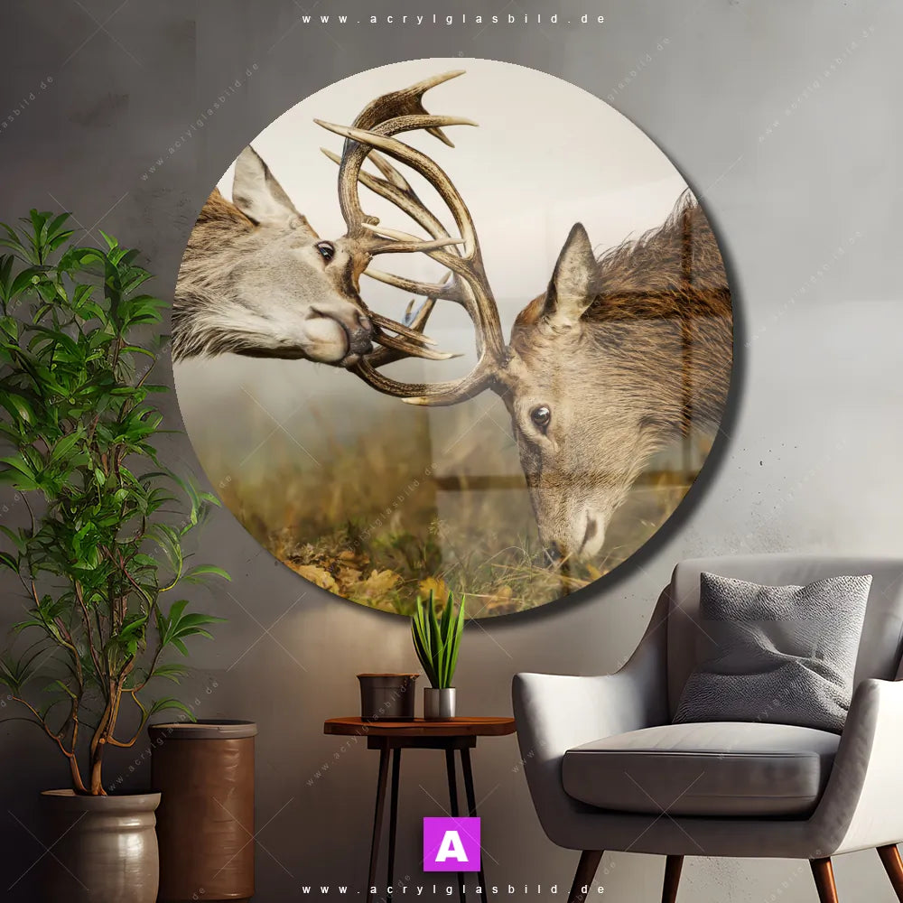 Acrylglasbild | Kämpfende Hirsche | Rund