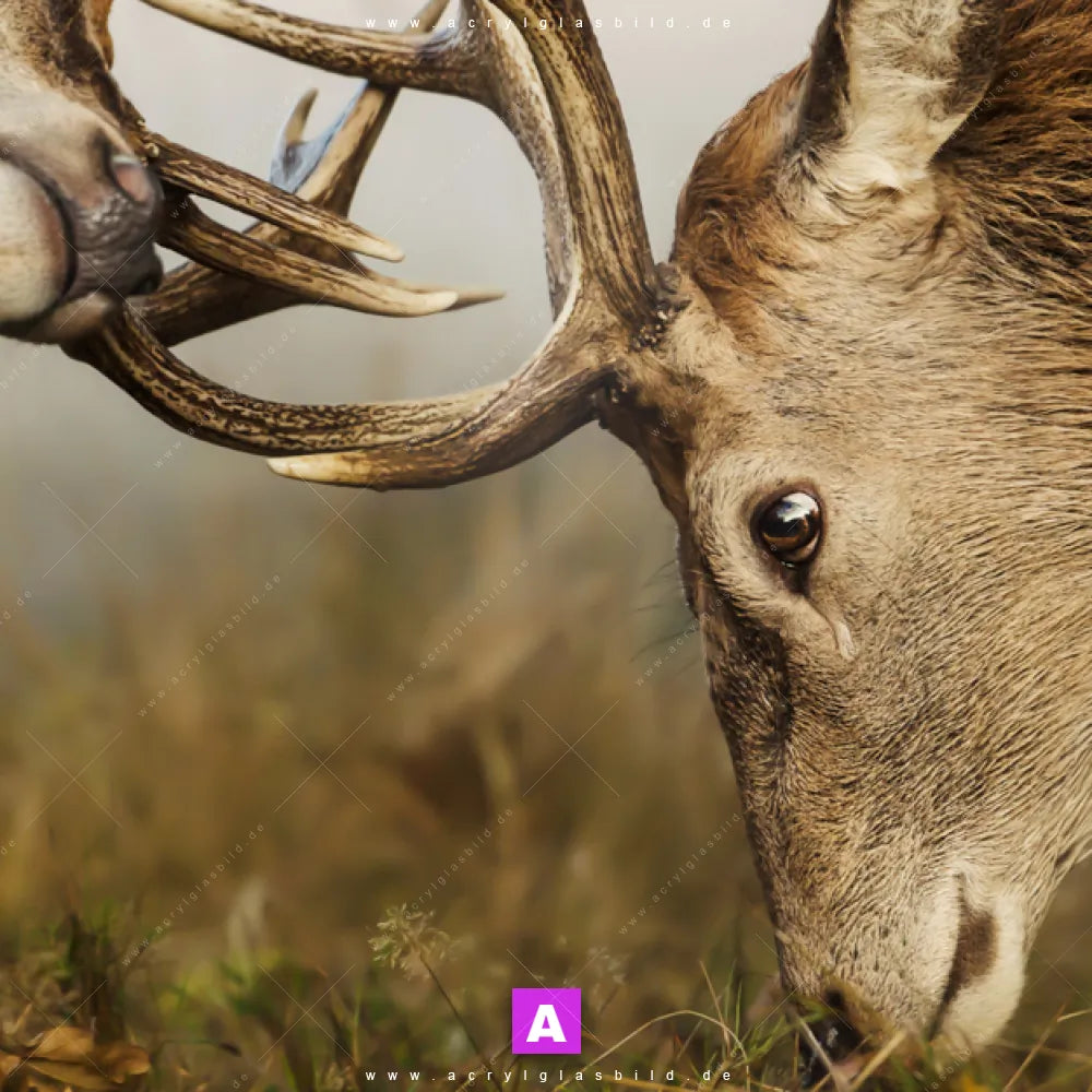 <b>Produktart:</b> Acrylglasbild | Glasbild | Wandbild aus Kunstglas | <b> Motiv:</b> Kämpfende Hirsche | <b> Bildausrichtung:</b> Rund | <b> Max. Motiv-Größe:</b> 270cm breit | 180cm hoch | <b> Verfügbare Formate: </b> Quadrat, Querformat, Hochformat, Panorama, Schmal, Rund | <b> Kategorie:</b>  Tierwelt | <b> Farben:</b>  Braun, Beige | <b> Kunstformen:</b>  Fotografie | <b> Kunststile:</b>  Natürlich - Realistisch