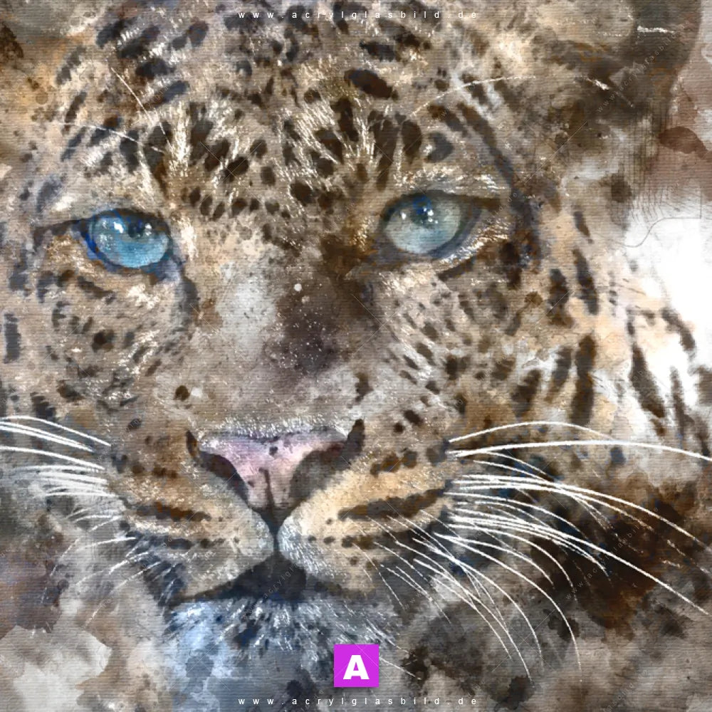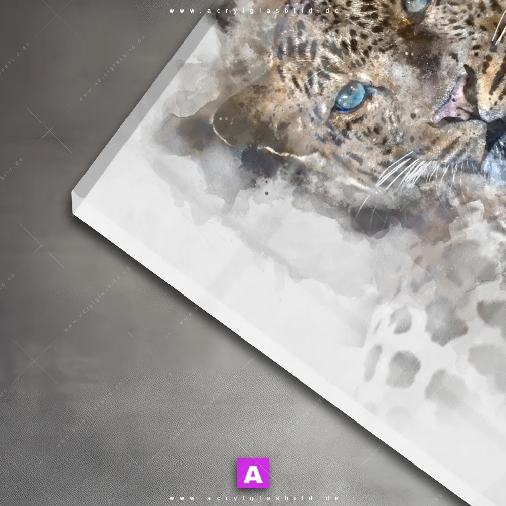 <b>Produktart:</b> Acrylglasbild | Glasbild | Wandbild aus Kunstglas | <b> Motiv:</b> Leopard Aquarell | <b> Bildausrichtung:</b> Rund | <b> Max. Motiv-Größe:</b> 270cm breit | 400cm hoch | <b> Verfügbare Formate: </b> Quadrat, Querformat, Hochformat, Panorama, Schmal, Rund | <b> Kategorie:</b> Tierwelt | <b> Farben:</b> Beige, Weiss, Hellblau, Grau , Rosa | <b> Kunstformen:</b> Kunst - Malerei | <b> Kunststile:</b> Modern Art, Grunge