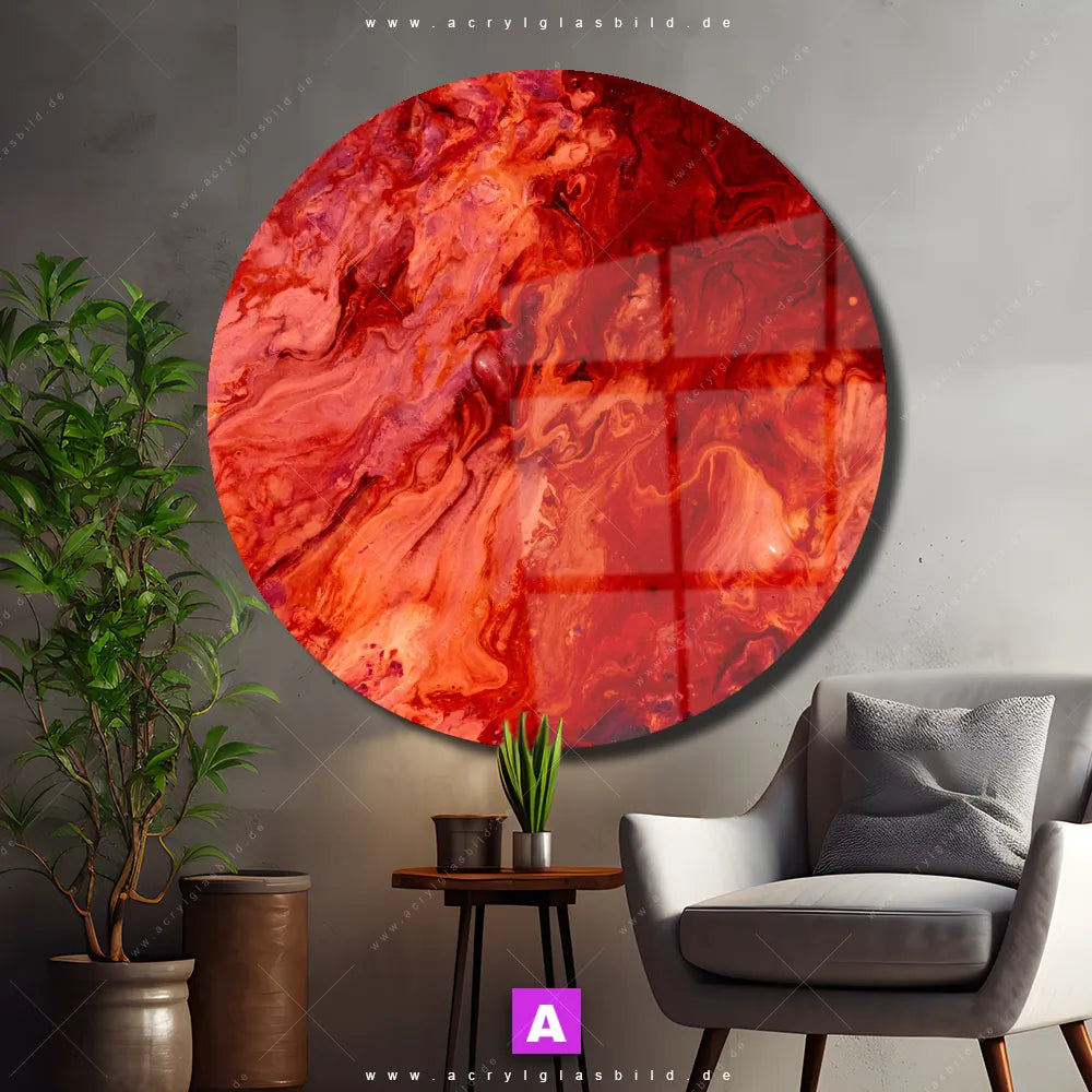 <b>Produktart:</b> Acrylglasbild | Glasbild | Wandbild aus Kunstglas | <b> Motiv:</b> Liquid Marmor rot | <b> Bildausrichtung:</b> Rund | <b> Max. Motiv-Größe:</b> 320cm breit | 180cm hoch | <b> Verfügbare Formate: </b> Quadrat, Querformat, Hochformat, Panorama, Schmal, Rund | <b> Kategorie:</b> Muster - Texturen | <b> Farben:</b> Rot | <b> Kunstformen:</b> Fotografie | <b> Kunststile:</b> Abstrakt, Modern Art