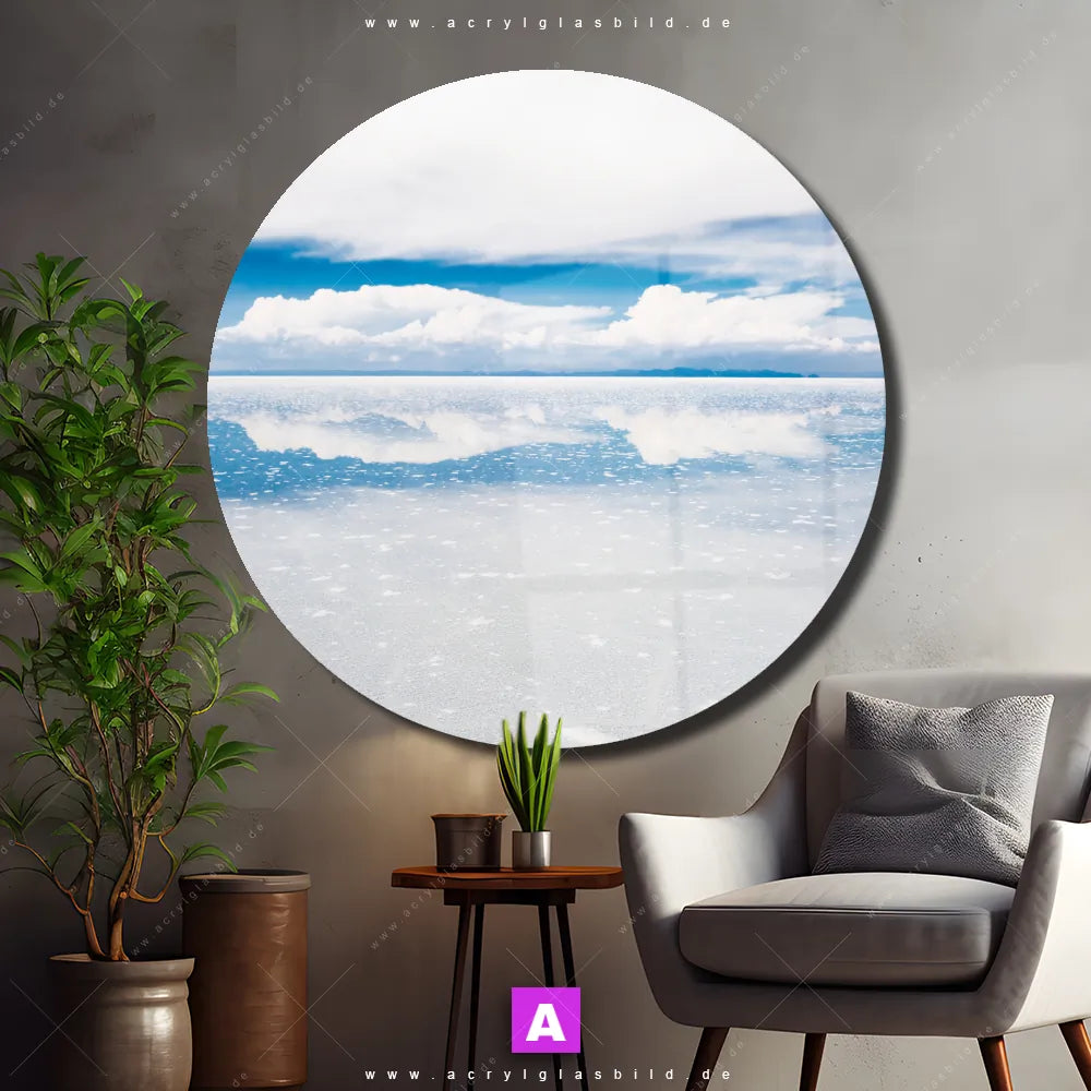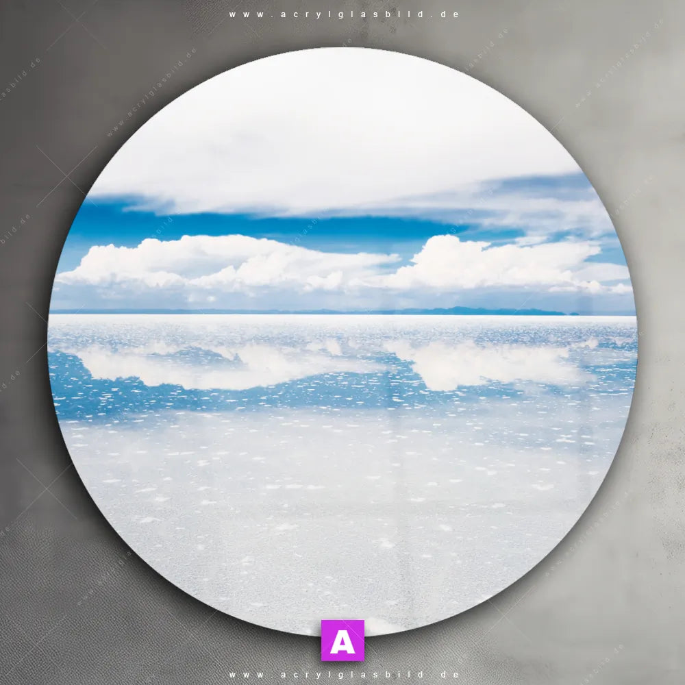 <b>Produktart:</b> Acrylglasbild | Glasbild | Wandbild aus Kunstglas | <b> Motiv:</b> Salzsee in Bolivien | <b> Bildausrichtung:</b> Rund | <b> Max. Motiv-Größe:</b> 270cm breit | 180cm hoch | <b> Verfügbare Formate: </b> Quadrat, Querformat, Hochformat, Panorama, Schmal, Rund | <b> Kategorie:</b> Landschaften | <b> Farben:</b> Weiss, Blau, Hellblau | <b> Kunstformen:</b> Fotografie | <b> Kunststile:</b> Natürlich - Realistisch, Minimalistisch