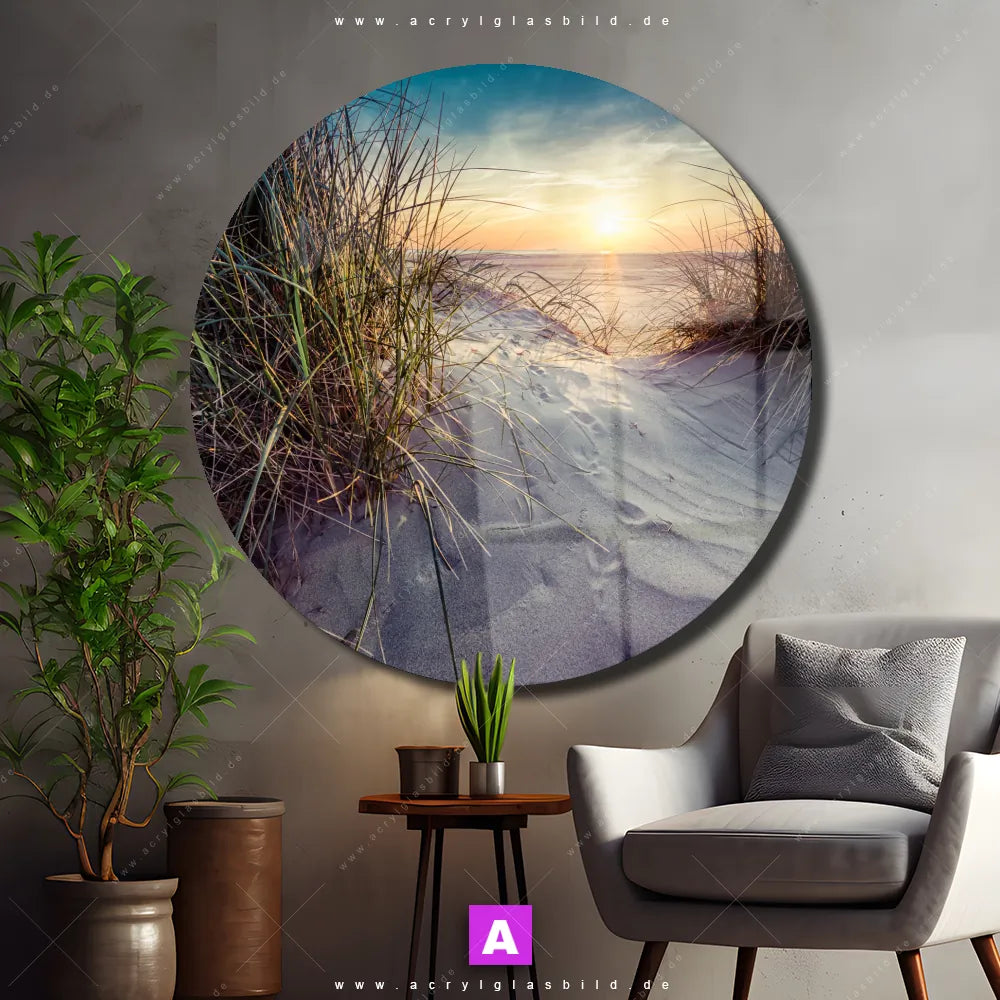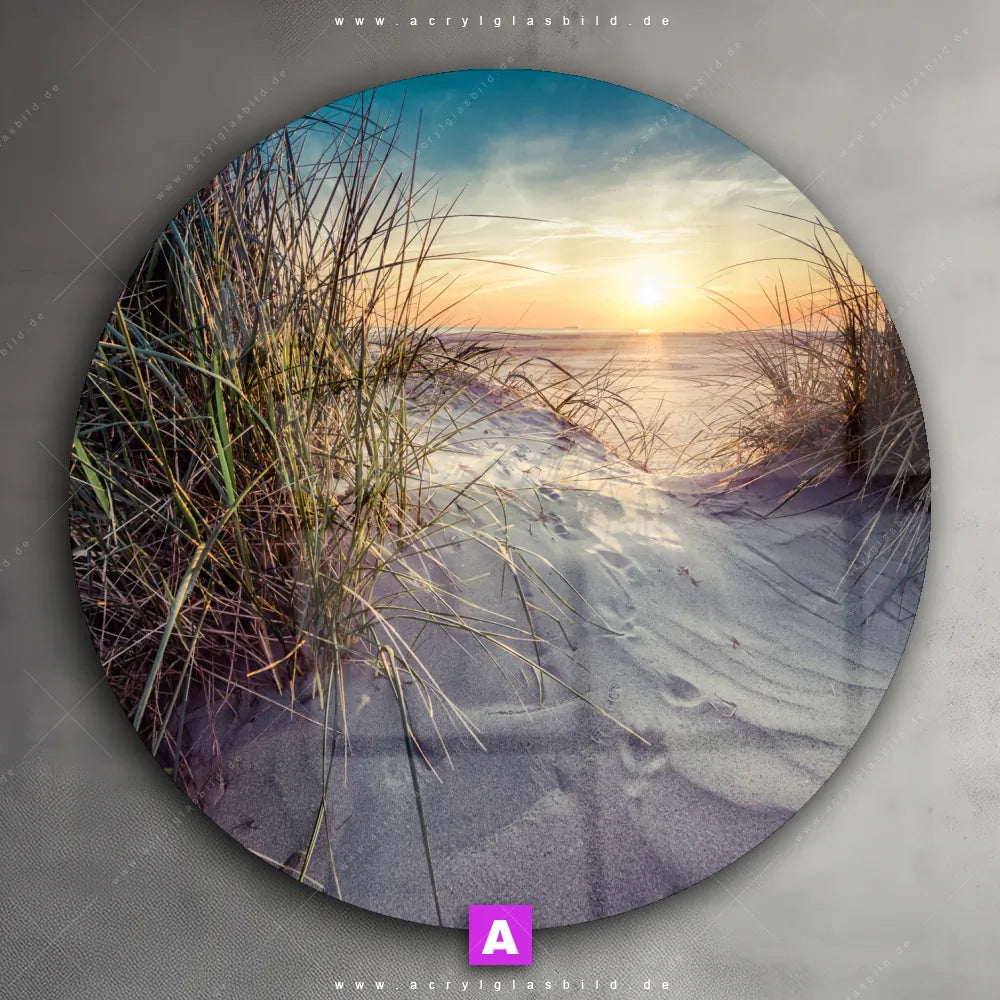 Hey du! Bist du es auch leid, auf langweilige, weiße Wände in deinem Raum zu starren und dich zu fragen, ob das der Sinn des Lebens ist? Unser Acrylglasbild mit dem Titel Strandlandschaft mit Gras im Format Rund verwandelt deine Wand in ein Kunstwerk und macht deinen Raum zum absoluten Hingucker.