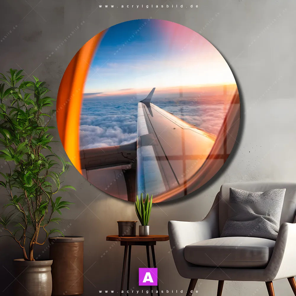 <b>Produktart:</b> Acrylglasbild | Glasbild | Wandbild aus Kunstglas | <b> Motiv:</b> Über den Wolken | <b> Bildausrichtung:</b> Rund | <b> Max. Motiv-Größe:</b> 200cm breit | 300cm hoch | <b> Verfügbare Formate: </b> Quadrat, Querformat, Hochformat, Panorama, Schmal, Rund | <b> Kategorie:</b> Fensterblick | <b> Farben:</b> Blau, Orange | <b> Kunstformen:</b> Fotografie | <b> Kunststile:</b> Natürlich - Realistisch