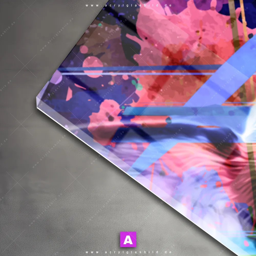 Das Motiv Abstrakter Chihuahua wird im UV-Direktdruck in den Farben Bunt auf die Rückseite einer 5mm starken, transparenten Acrylglasplatte gedruckt. Das durchscheinende Motiv bunter Chihuahua im Abstrakt, Grunge, Mixed Media, Modern Art, Pop Art, Street Art Stil wird anschließend vollflächig mit einer weißen Schicht hinterlegt. Das Tierwelt Acrylglasbild | Schmal erhält so eine bemerkenswerte Farbbrillanz, hohe Schärfe und erstaunliche Tiefenwirkung.