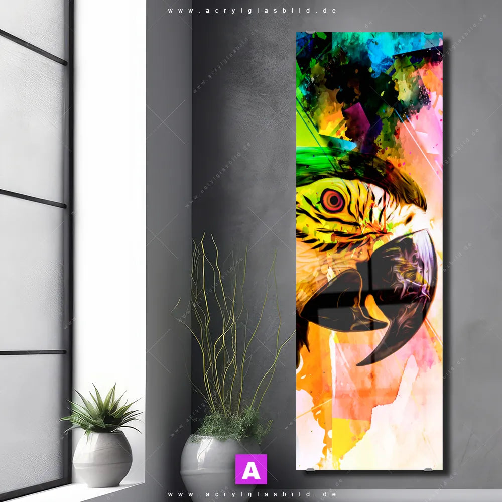 Acrylglasbild | Abstrakter Papagei | Schmal