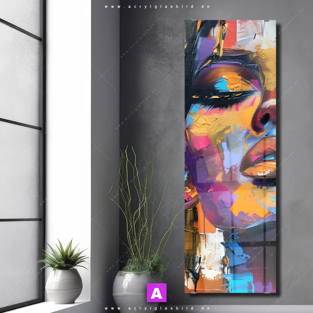 Langweilige Wände sind wie ein trockenes Toastbrot ohne Butter und Marmelade - einfach fade und nicht sehr appetitlich. Aber zum Glück haben wir das perfekte Acrylglasbild für dich: Mit unserem Kunstwerk Abstraktes Frauenporträt Dilara im Format Schmal wird deine Wand zur Leinwand und dein Raum zum Blickfang.