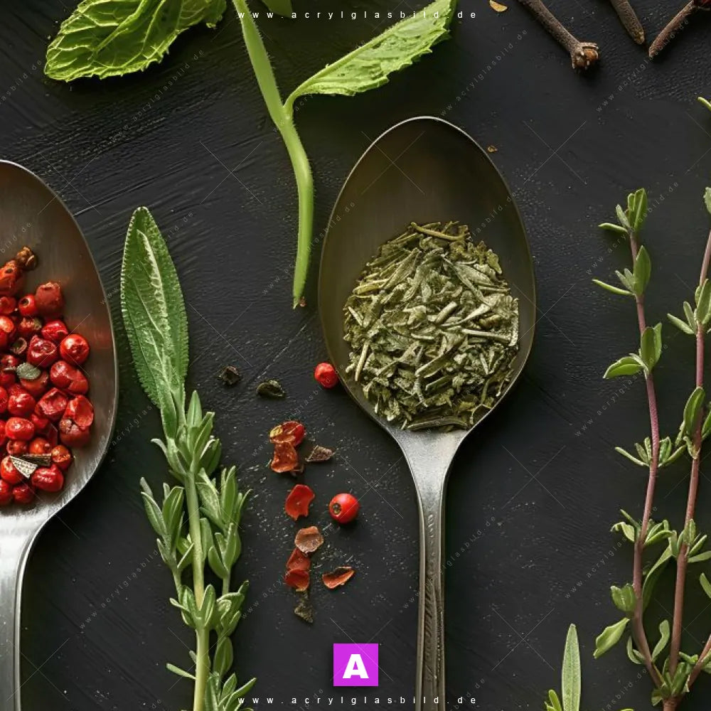 Vergiss also langweilige weiße Wände und entscheide dich für das Acrylglasbild Würzige Zutaten, gestaltet als Digitale Kunst, Fotografie, das deinem Raum Charakter verleiht und dich jeden Tag aufs Neue inspiriert. Mit diesem Essen - Trinken Acrylglasbild wird deine Wand zur Kunst und du zum Kunstliebhaber.