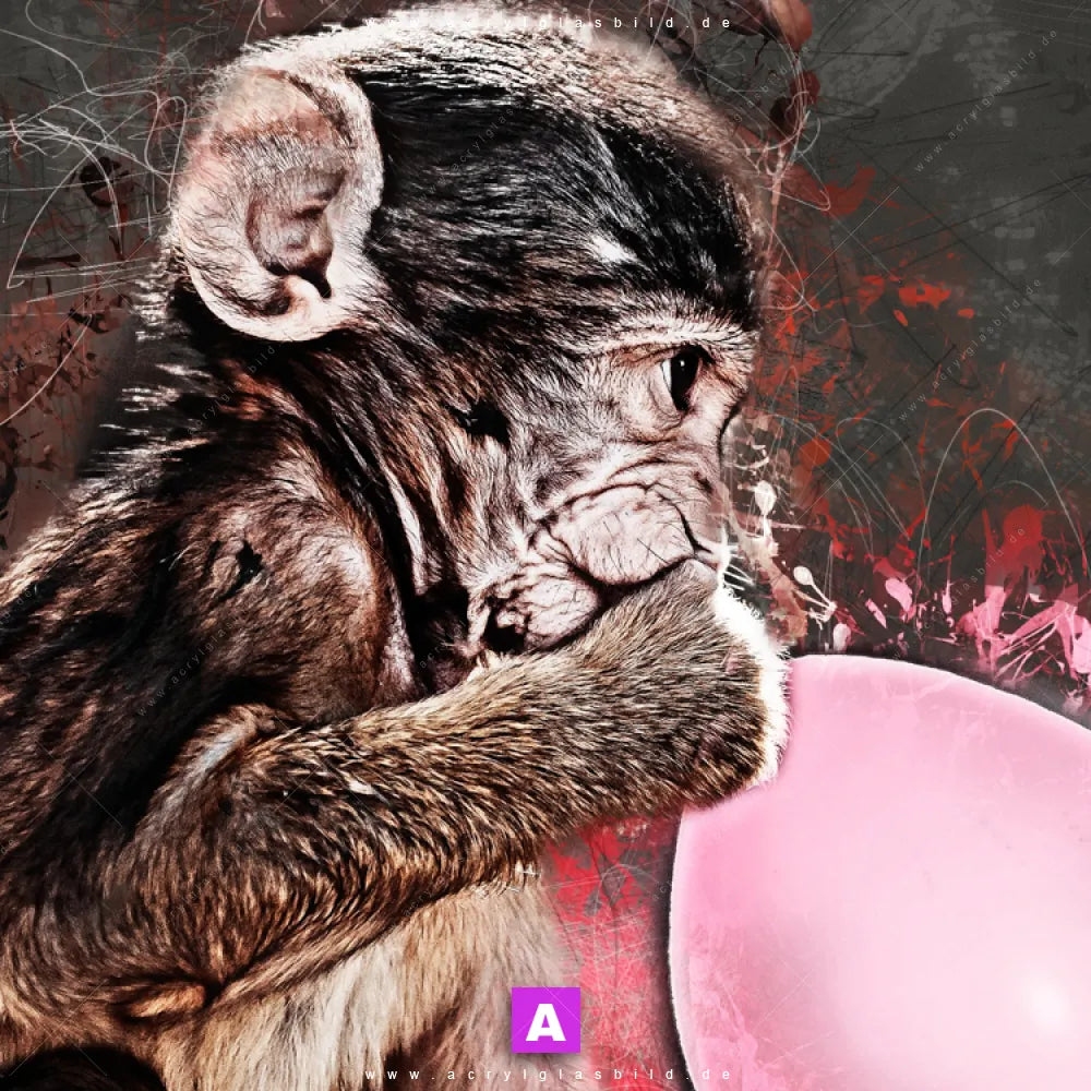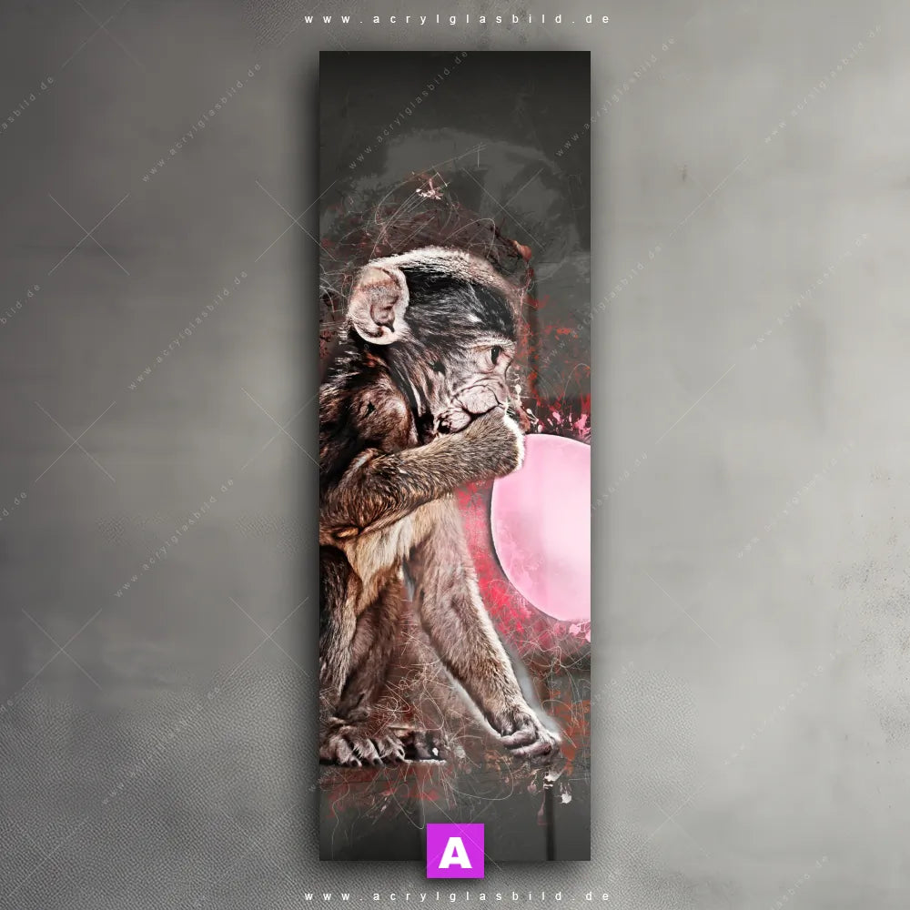 <b>Produktart:</b> Acrylglasbild | Glasbild | Wandbild aus Kunstglas | <b> Motiv:</b> Ballon Äffchen | <b> Bildausrichtung:</b> Schmal | <b> Max. Motiv-Größe:</b> 180cm breit | 240cm hoch | <b> Verfügbare Formate: </b> Quadrat, Querformat, Hochformat, Panorama, Schmal, Rund | <b> Kategorie:</b> Tierwelt | <b> Farben:</b> Pink, Rosa, Schwarz | <b> Kunstformen:</b> Digitale Kunst | <b> Kunststile:</b> Abstrakt, Modern Art, Grunge