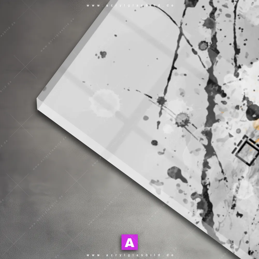 Das Motiv Buddha - Grunge-Stil wird im UV-Direktdruck in den Farben Silber, Gold auf die Rückseite einer 5mm starken, transparenten Acrylglasplatte gedruckt. Das durchscheinende Motiv Abstrakte Buddha-Skulptur in Grau- und Goldtönen im Abstrakt, Grunge, Mixed Media, Modern Art Stil wird anschließend vollflächig mit einer weißen Schicht hinterlegt. Das Buddha - Feng Shui Acrylglasbild | Schmal erhält so eine bemerkenswerte Farbbrillanz, hohe Schärfe und erstaunliche Tiefenwirkung.