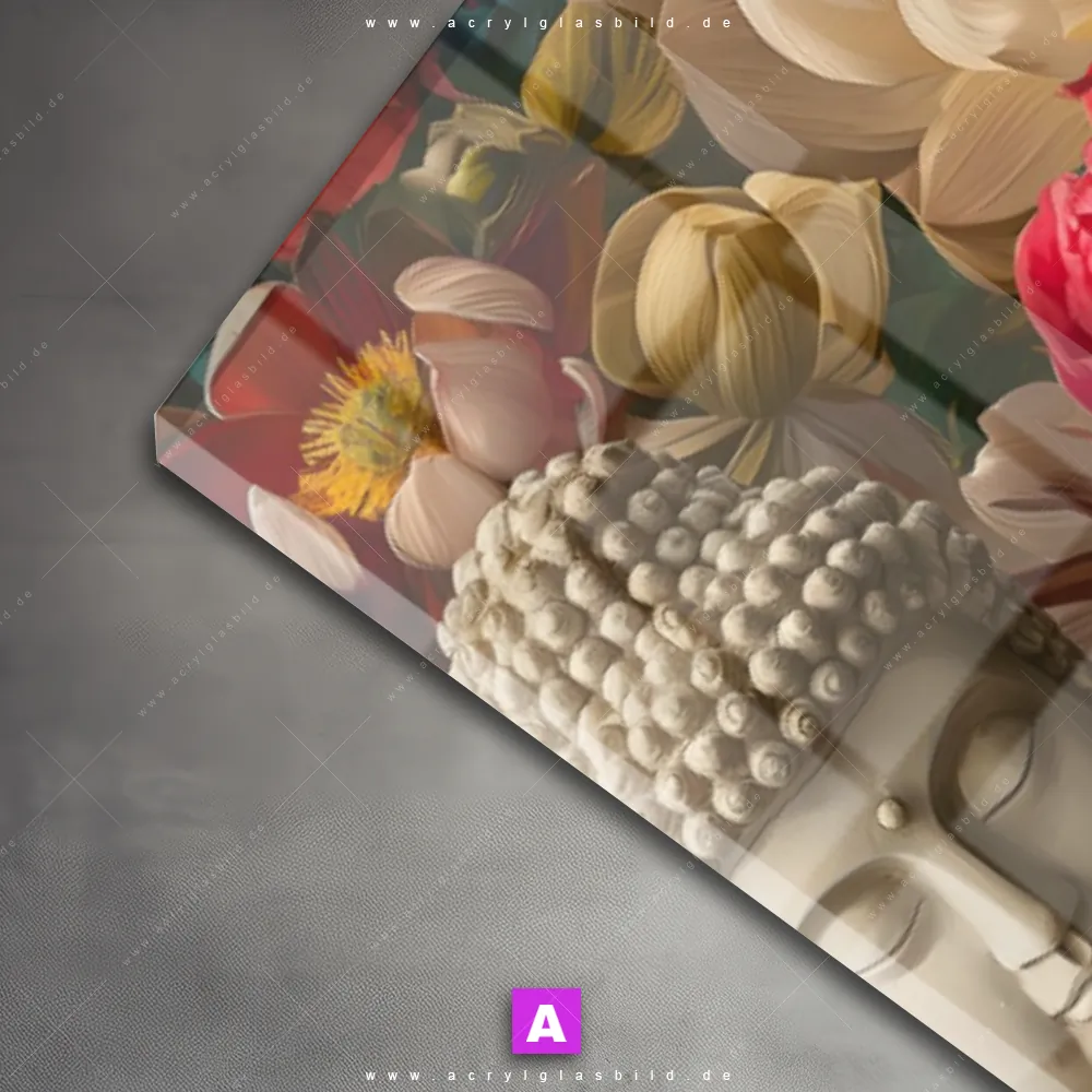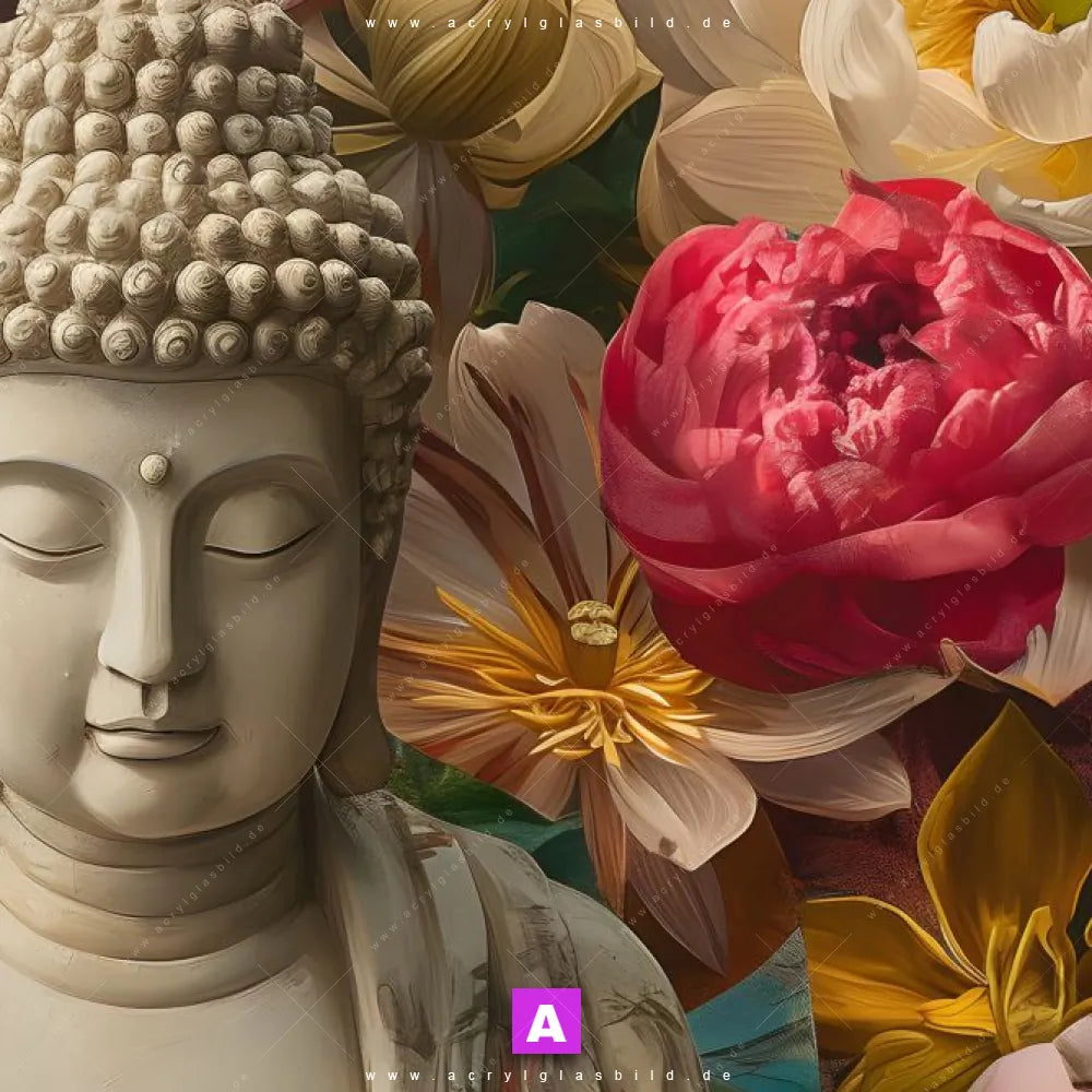 Vergiss also langweilige weiße Wände und entscheide dich für das Acrylglasbild Bunte Blütenkunst mit Buddha, gestaltet als Digitale Kunst, das deinem Raum Charakter verleiht und dich jeden Tag aufs Neue inspiriert. Mit diesem Buddha - Feng Shui, Blumen - Botanik Acrylglasbild wird deine Wand zur Kunst und du zum Kunstliebhaber.
