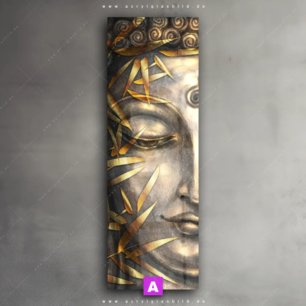 <b>Produktart:</b> Acrylglasbild | Glasbild | Wandbild aus Kunstglas | <b> Motiv:</b> Buddha Silber & Gold | <b> Bildausrichtung:</b> Schmal | <b> Max. Motiv-Größe:</b> 180cm breit | 250cm hoch | <b> Verfügbare Formate: </b> Quadrat, Querformat, Hochformat, Panorama, Schmal, Rund | <b> Kategorie:</b> Buddha - Feng Shui | <b> Farben:</b> Gold, Silber | <b> Kunstformen:</b> Digitale Kunst | <b> Kunststile:</b> Modern Art