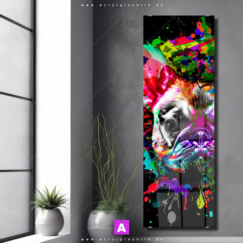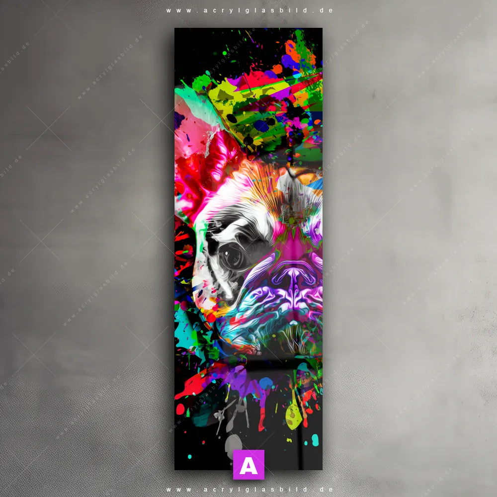 Acrylglasbild | Bunte Bulldogge Schwarz | Schmal