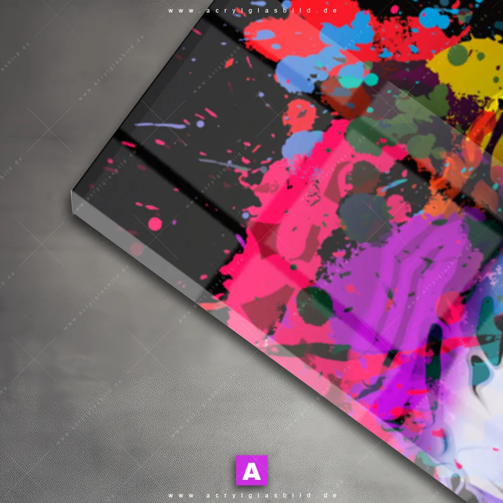 Das Motiv Bunter Tiger Schwarz wird im UV-Direktdruck in den Farben Bunt, Schwarz auf die Rückseite einer 5mm starken, transparenten Acrylglasplatte gedruckt. Das durchscheinende Motiv Tiger mit Farbakzenten im Abstrakt, Modern Art, Pop Art, Street Art Stil wird anschließend vollflächig mit einer weißen Schicht hinterlegt. Das Tierwelt Acrylglasbild | Schmal erhält so eine bemerkenswerte Farbbrillanz, hohe Schärfe und erstaunliche Tiefenwirkung.