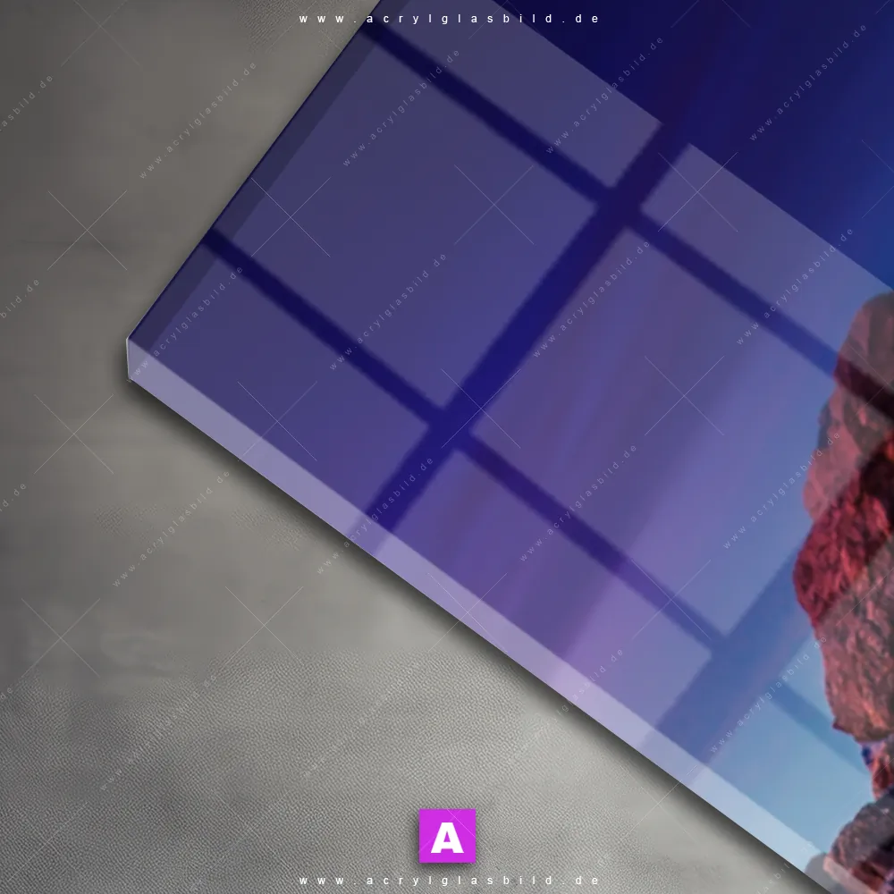 Das Motiv Felsen im Meer wird im UV-Direktdruck in den Farben Blau, Lila, Pink, Hellblau, Orange auf die Rückseite einer 5mm starken, transparenten Acrylglasplatte gedruckt. Das durchscheinende Motiv Felsenküste im Natürlich - Realistisch, Modern Art Stil wird anschließend vollflächig mit einer weißen Schicht hinterlegt. Das Landschaften, Strand - Meer Acrylglasbild | Schmal erhält so eine bemerkenswerte Farbbrillanz, hohe Schärfe und erstaunliche Tiefenwirkung.