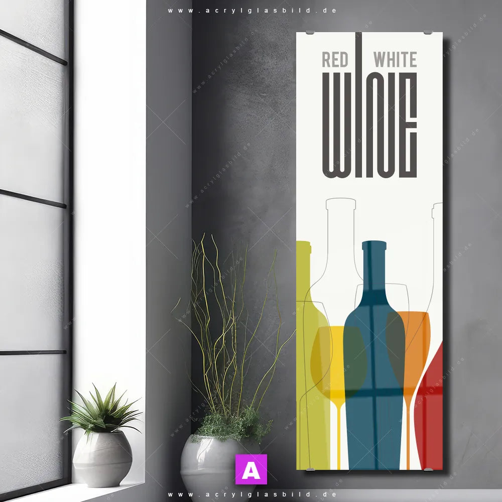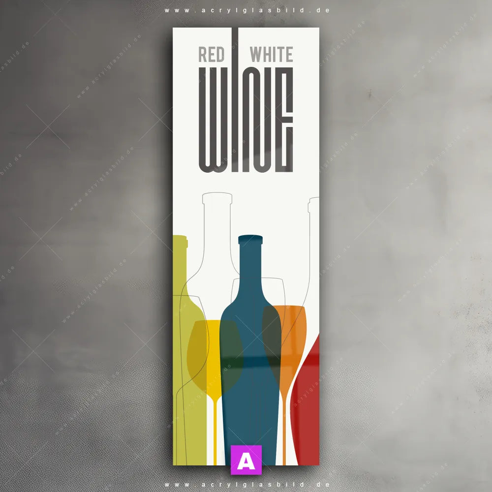 <b>Produktart:</b> Acrylglasbild | Glasbild | Wandbild aus Kunstglas | <b> Motiv:</b> Flaschen & Gläser | <b> Bildausrichtung:</b> Schmal | <b> Max. Motiv-Größe:</b> 300cm breit | 300cm hoch | <b> Verfügbare Formate: </b> Quadrat, Querformat, Hochformat, Panorama, Schmal, Rund | <b> Kategorie:</b> Essen - Trinken, Muster - Texturen | <b> Farben:</b> Weiss, Blau, Gelb , Grün, Rot | <b> Kunstformen:</b> Vektor - Illustration, Digitale Kunst | <b> Kunststile:</b> Modern Art