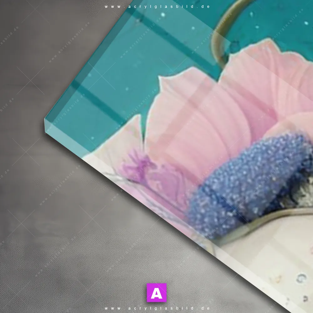 Das Motiv Florales Frauenporträt - Miona wird im UV-Direktdruck in den Farben Blau, Türkis, Rosa, Lila, Weiss auf die Rückseite einer 5mm starken, transparenten Acrylglasplatte gedruckt. Das durchscheinende Motiv Blumiges Frauengesicht im Modern Art, Floral Stil wird anschließend vollflächig mit einer weißen Schicht hinterlegt. Das Porträts - Menschen, Blumen - Botanik Acrylglasbild | Schmal erhält so eine bemerkenswerte Farbbrillanz, hohe Schärfe und erstaunliche Tiefenwirkung.