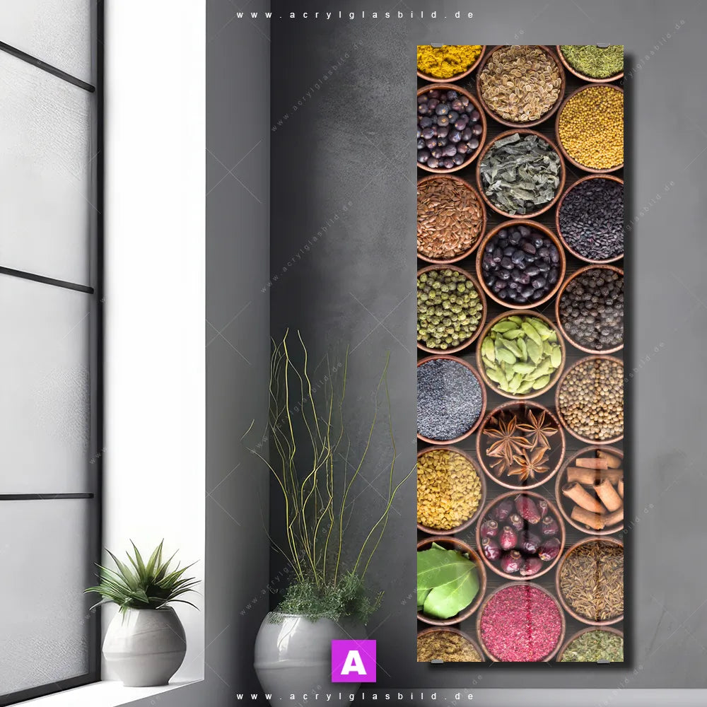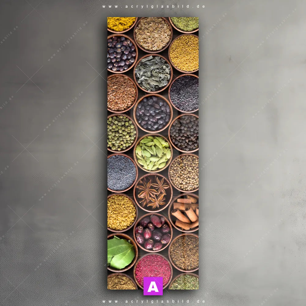 <b>Produktart:</b> Acrylglasbild | Glasbild | Wandbild aus Kunstglas | <b> Motiv:</b> Gewürze & Kräuter | <b> Bildausrichtung:</b> Schmal | <b> Max. Motiv-Größe:</b> 310cm breit | 200cm hoch | <b> Verfügbare Formate: </b> Quadrat, Querformat, Hochformat, Panorama, Schmal, Rund | <b> Kategorie:</b> Essen - Trinken | <b> Farben:</b> Bunt | <b> Kunstformen:</b> Fotografie | <b> Kunststile:</b> Modern Art, Natürlich - Realistisch