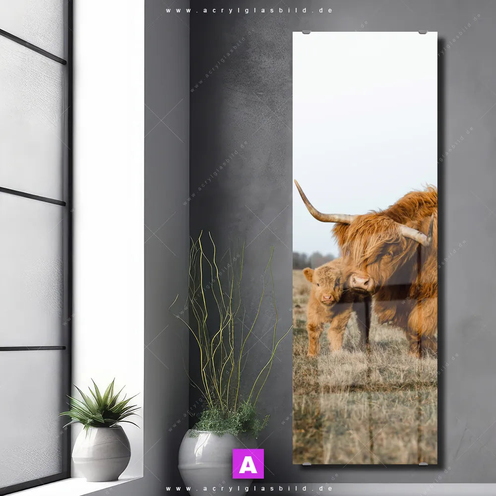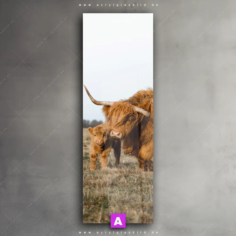 <b>Produktart:</b> Acrylglasbild | Glasbild | Wandbild aus Kunstglas | <b> Motiv:</b> Highlander Familie | <b> Bildausrichtung:</b> Schmal | <b> Max. Motiv-Größe:</b> 300cm breit | 450cm hoch | <b> Verfügbare Formate: </b> Quadrat, Querformat, Hochformat, Panorama, Schmal, Rund | <b> Kategorie:</b> Tierwelt | <b> Farben:</b> Braun, Beige, Weiss | <b> Kunstformen:</b> Fotografie | <b> Kunststile:</b> Modern Art, Natürlich - Realistisch