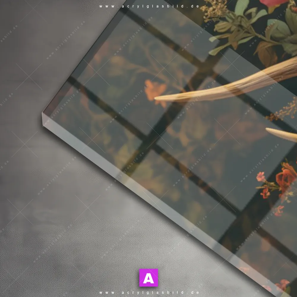 Vergiss also langweilige weiße Wände und entscheide dich für das Acrylglasbild Hirsch mit Blumenkranz, gestaltet als KI-generiertes Bild, das deinem Raum Charakter verleiht und dich jeden Tag aufs Neue inspiriert. Mit diesem Tierwelt, Blumen - Botanik Acrylglasbild wird deine Wand zur Kunst und du zum Kunstliebhaber.