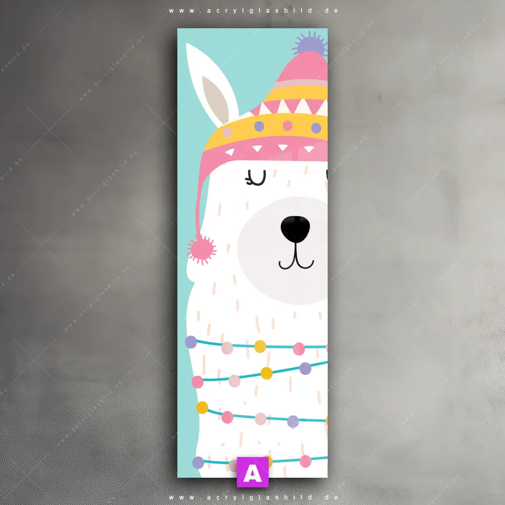 <b>Produktart:</b> Acrylglasbild | Glasbild | Wandbild aus Kunstglas | <b> Motiv:</b> Kein Drama Lama | <b> Bildausrichtung:</b> Schmal | <b> Max. Motiv-Größe:</b> 300cm breit | 300cm hoch | <b> Verfügbare Formate: </b> Quadrat, Querformat, Hochformat, Panorama, Schmal, Rund | <b> Kategorie:</b> Tierwelt | <b> Farben:</b> Türkis, Rosa, Weiss, Orange | <b> Kunstformen:</b> Digitale Kunst | <b> Kunststile:</b> Modern Art