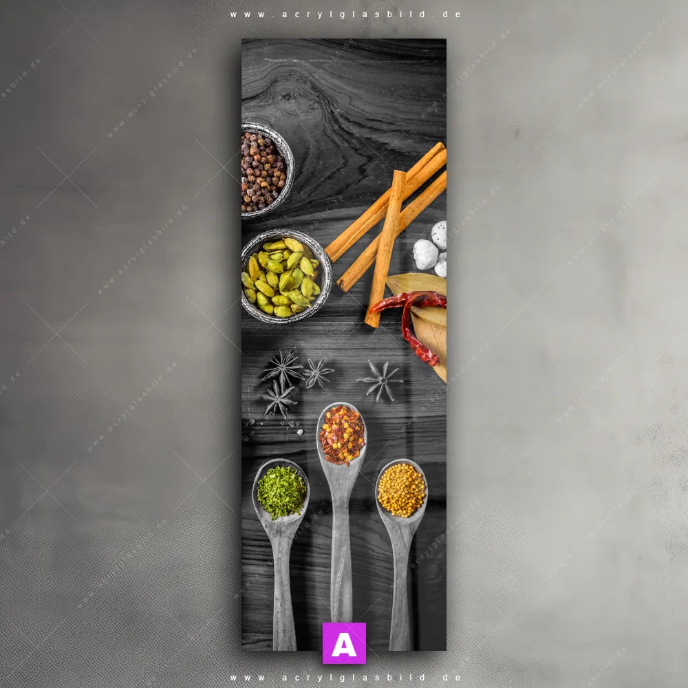 Vergiss also langweilige weiße Wände und entscheide dich für das Acrylglasbild Gewürze mit dunklem Untergrund, gestaltet als Fotografie, das deinem Raum Charakter verleiht und dich jeden Tag aufs Neue inspiriert. Mit diesem Essen - Trinken Acrylglasbild wird deine Wand zur Kunst und du zum Kunstliebhaber.